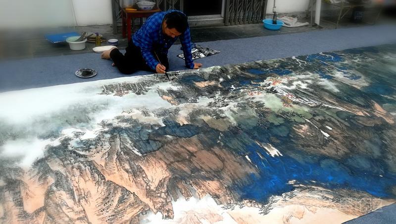 方然正在绘制巨幅作品进行中……😇
