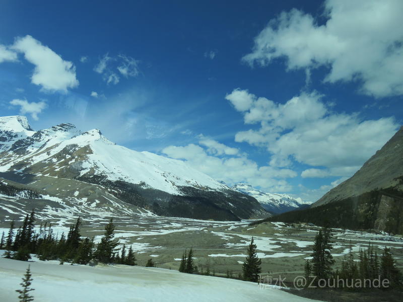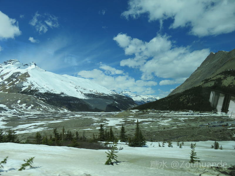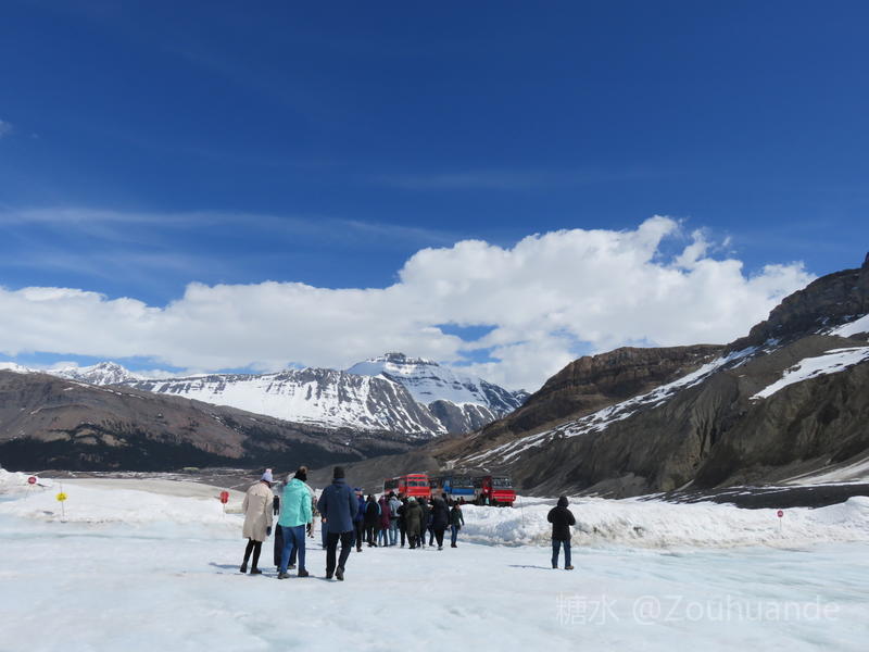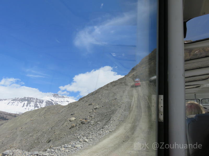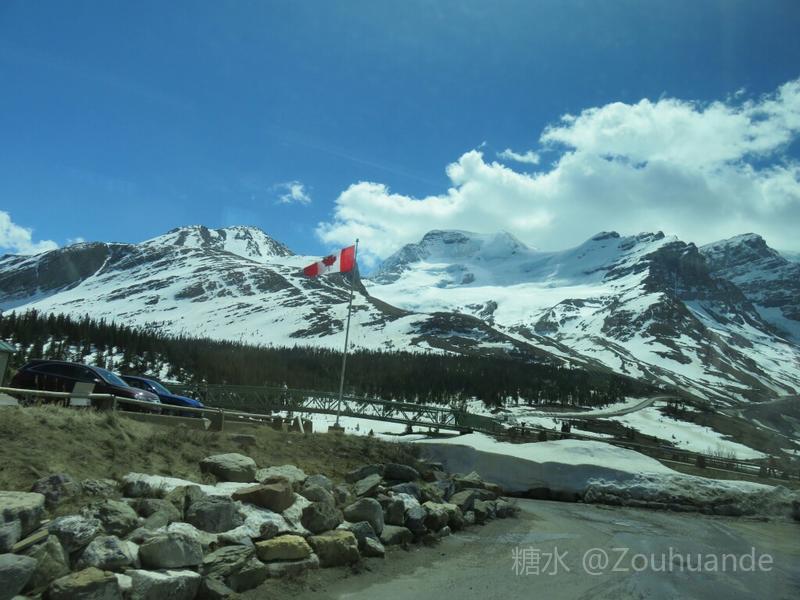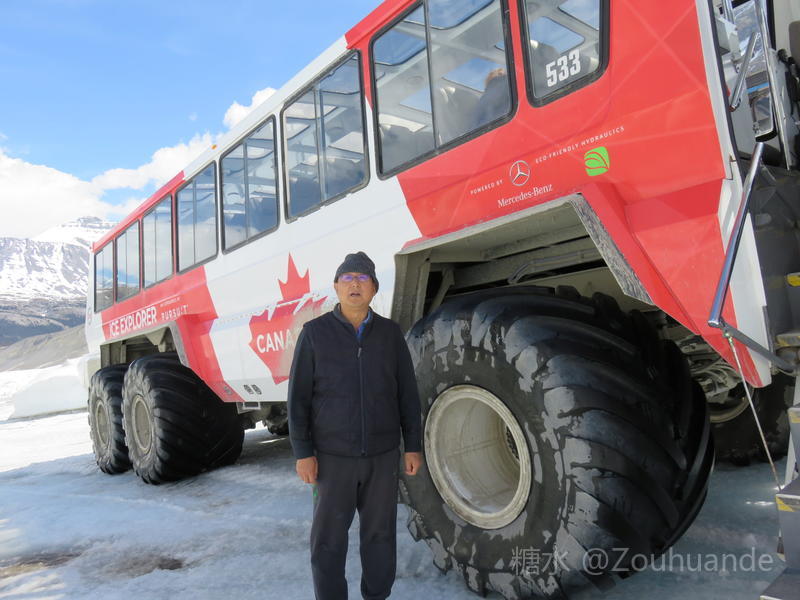 2019-5-15邹焕德摄影•文 加拿大哥伦比亚冰原游览纪实。 五月十二日,我登上了哥伦比亚冰原。 哥伦比亚冰原位于加拿大不列颠哥伦比亚省和阿尔伯塔省交界处。是落矶山系中第一大冰原,是北极圈以外世界上最大的冰原遗迹,也是历经四次冰河时代所形成的天然宝藏。因其主要堆积区位于大陆分水岭,故又称河流之母。