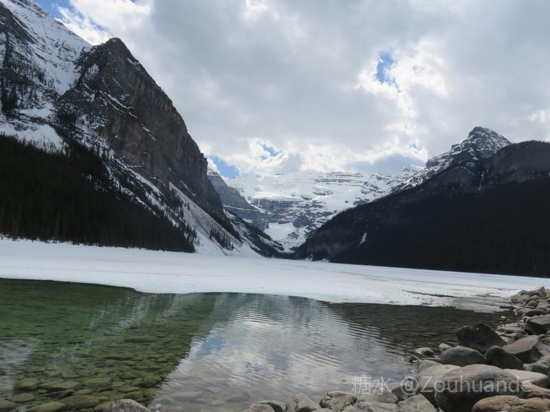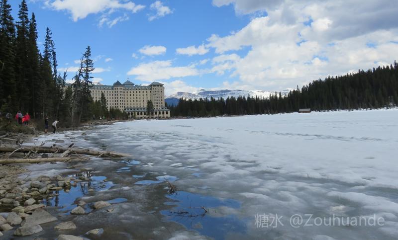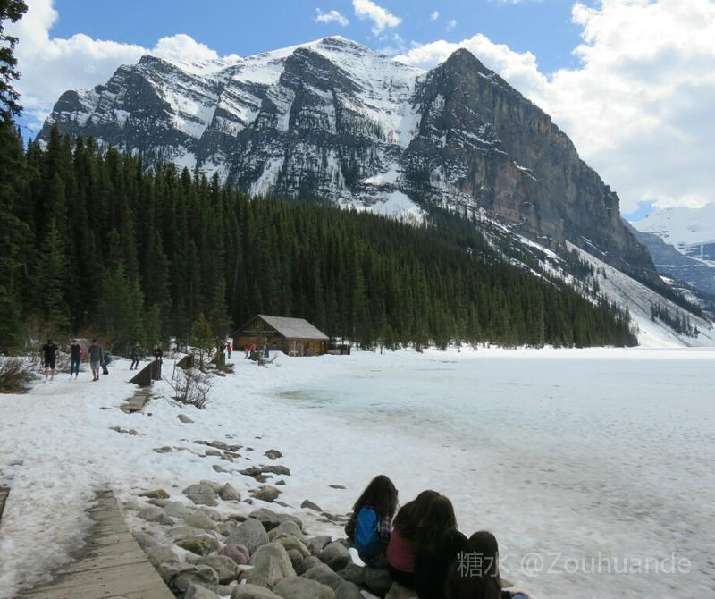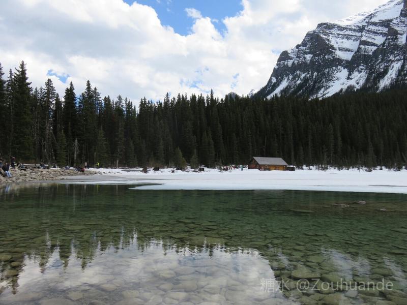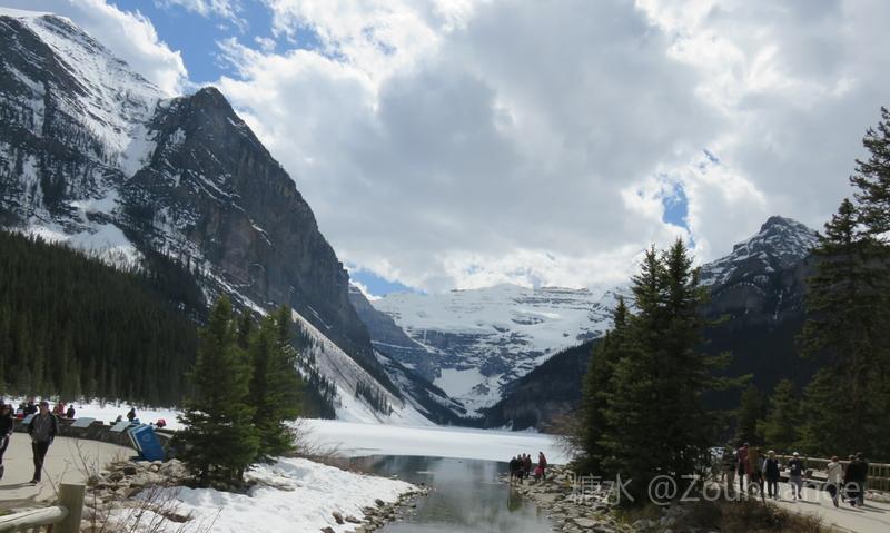 位于公园中部的路易斯湖,是班夫国家公园最大的湖。 为什么叫路易斯湖?这里还有一个历史典故。据说英国国王的女儿,违背了皇室家族的规定,决意下嫁给一位公爵。国王为了惩罚她,就把她和公爵发配到北美北部的加拿大一个省。后来公爵当了省长,修建了一号公路,打通了与外界的通道。这个省发展很快,大家都拥戴他。他和公主有个女儿叫阿尔伯塔•路易斯。他和公主很爱自己的女儿,所以就用女儿的名字,命名为阿尔伯塔省和路易斯湖。 路易斯湖风景尤佳,湖水随光线深浅,由蓝变绿,漫湖碧透。另一处的翡翠湖较路易斯湖更加幽静,衬托路易斯湖的美丽。以路易斯湖为主,沿落基山脉,有多处这类冰川湖泊,它们犹如一串串珍珠,把静静的群山点缀得生气勃勃。 路易斯湖边是费尔蒙酒店。