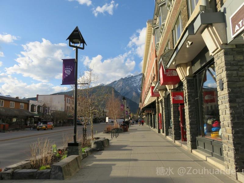 班夫小镇,位于班夫国家公园中心,依偎在壮丽的雪山和娇媚的湖水之间。 为保持国家公园自然风景的原始美,加拿大严格控制小镇的扩张。小镇常住人口不足9000。 班夫大道是班夫镇最繁华的去处,大道两旁保留着19世纪的建筑风格,店铺、餐馆栉比鳞次。 虽是五月之初,但班芙的色彩简直就是一幅精美油画:碧绿的湖水,银灰的山脉,雪白的山顶,黄金色的阳光,完美和谐融为一体。 班芙的标志性建筑是班夫温泉城堡,是北美最大的度假娱乐饭店之一。它一共有18层楼,788个房间。 饭店地处风景绝佳的弓箭河和松林之中,是班芙小镇上一道有名的风景。远远从外面看去,它犹如中世纪的城堡,既雄伟典雅,又略显神秘,雄伟中充满中世纪的神秘感觉。白雪覆盖饭店的屋顶,远远望去仿佛来到了童话世界,而且旅客还可以从这梦幻般的城堡里眺望远处落基山上美丽的瀑布。 瀑布自然突然改道,迄今也没有人究其因。或许这就是加拿大人的理念,一切尊崇自然。旧河道遗址还在,我们步行其中,遐想昔日身临瀑布其中,莫不怡然。