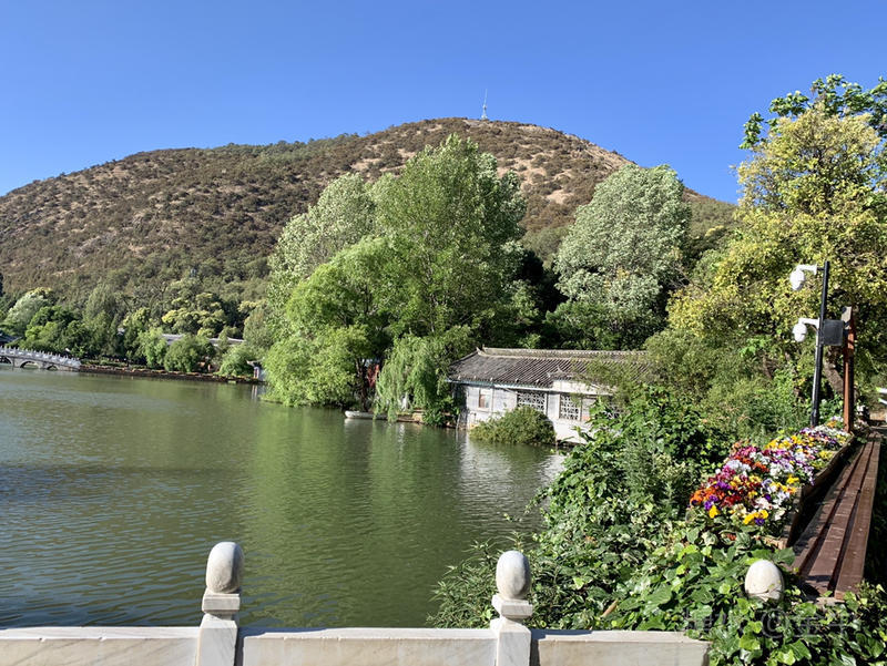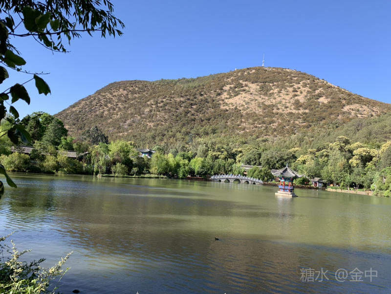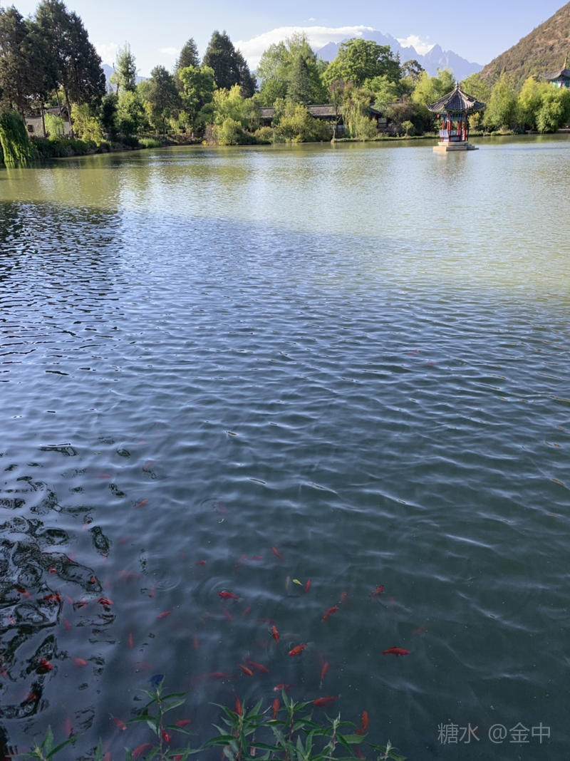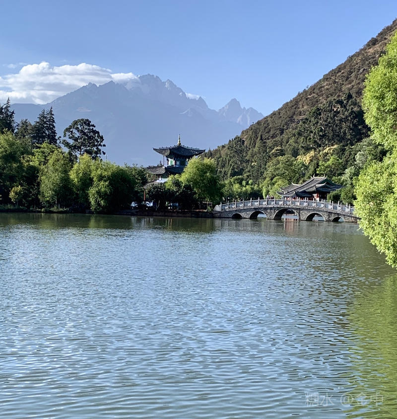 我记得上次来丽江黑龙潭公园是逆水而上,从丽江古城大水车逆水而上进公园。这次来,是顺水而下,从公园沿着水边进古城南门。这仿佛也顺应了什么年龄做什么事,年纪大了不能逆转时光,就要顺风顺水,过好自己的生活,安享晚年。
