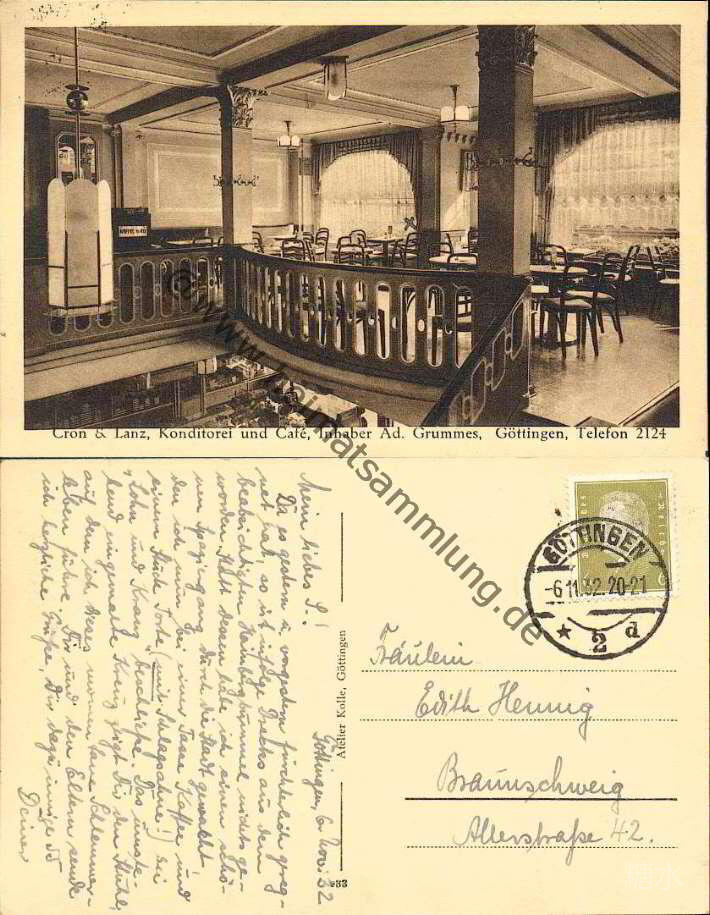 更有甚者,在过去的一百多年中,哥廷根大学的好多教授就是为了树轮蛋糕,更为了”桂冠和长矛“的蛋糕&咖啡文化和气氛,婉言拒绝其它大学的聘书,一生留在这里。
