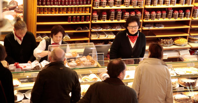顾客可以在店堂里购买蛋糕,然后直接带回家。