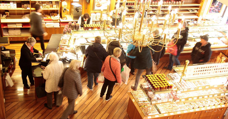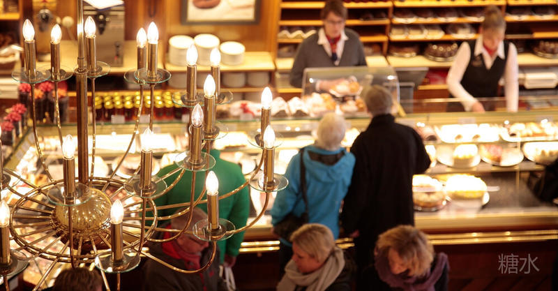 和其它咖啡馆一样,这里有很多不同的蛋糕、巧克力和其它甜食。