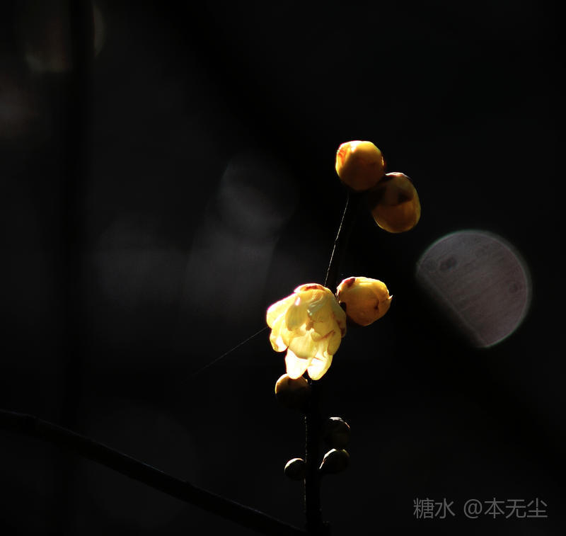 忆为梅花醉不醒。 断桥流水去无声。 鹭翘沙嘴亦多情。 疏影卧波波不动, 暗香浮月月微明。 高楼羌管未须横。 ----宋 赵长卿·浣溪沙 腊梅