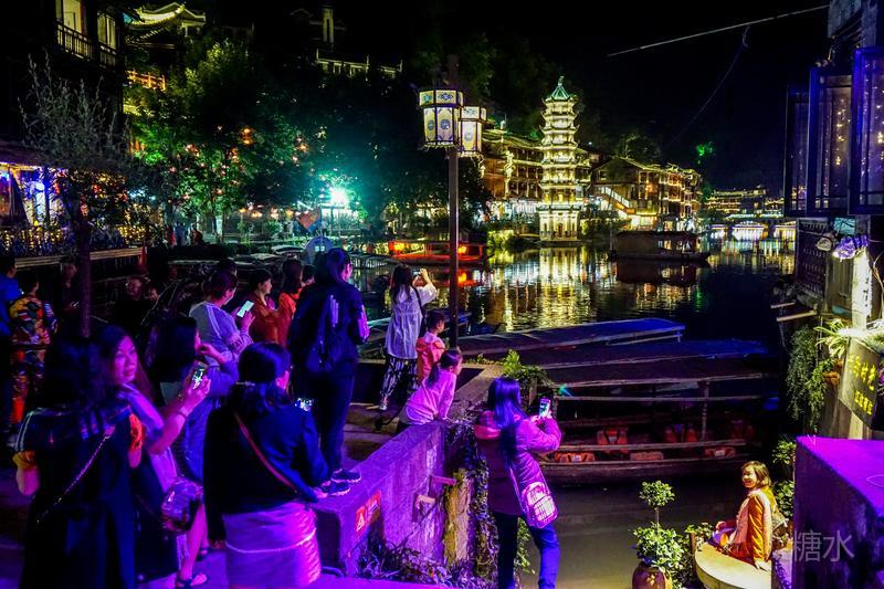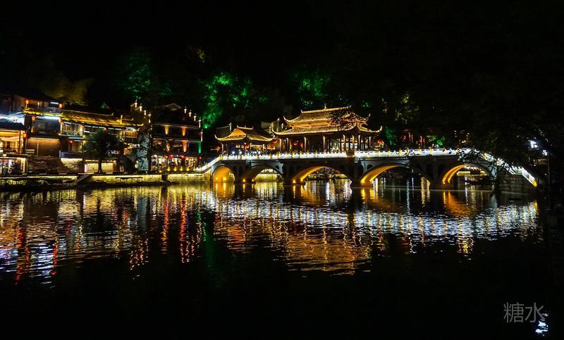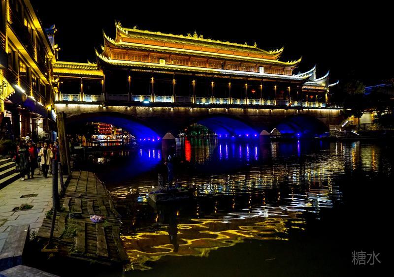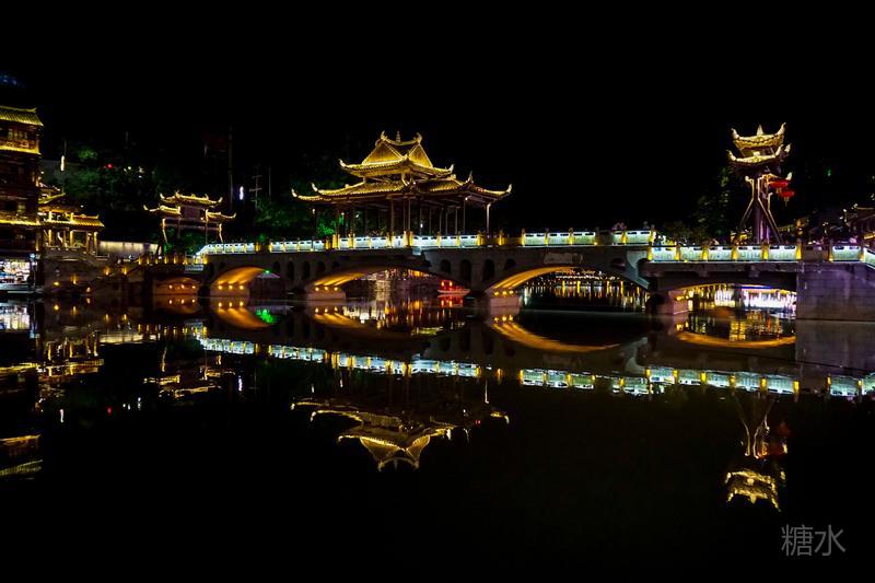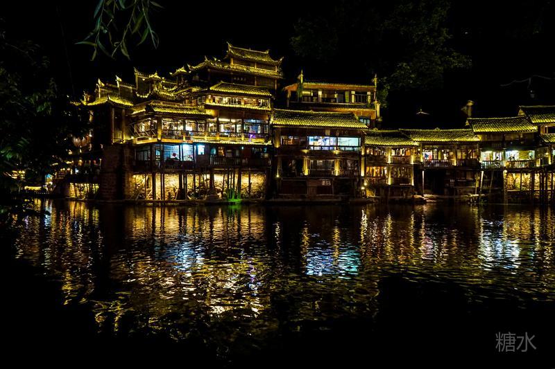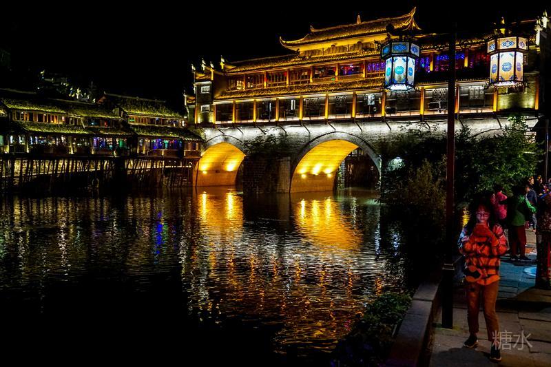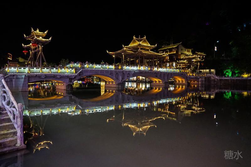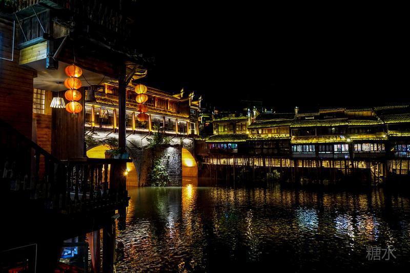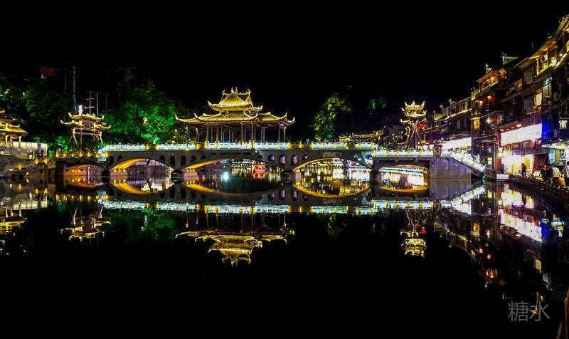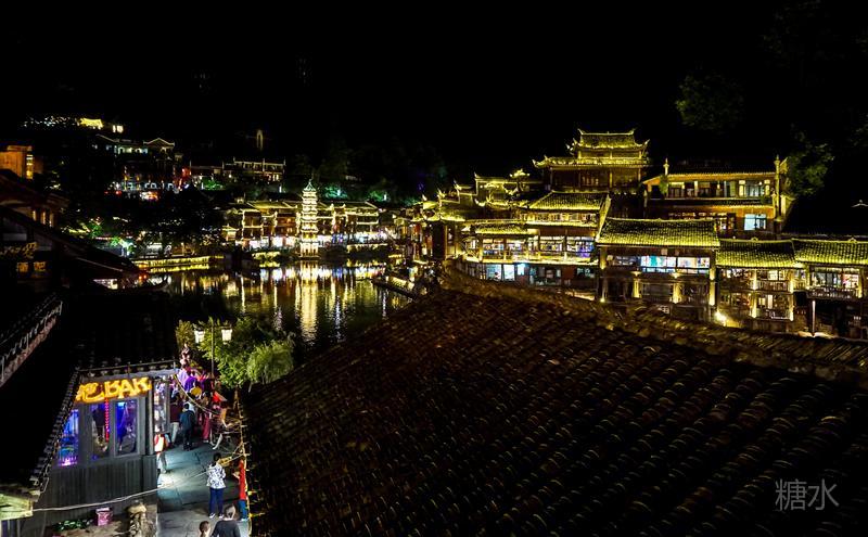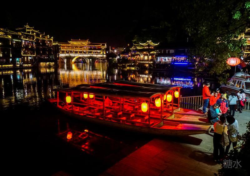 来凤凰不仅要欣赏沱江两岸若思迷幻的日景,更要欣赏沱江两岸璀璨迷人的夜景,否则,你不算来过凤凰。 用心品味凤凰古城,你会发觉这里“白天很古老,夜晚很现代”。说它夜晚很现代,是它10多年打造的旅游名牌,注入了现代元素,酒吧、美食街、特色蓬船、灯光工程等等,