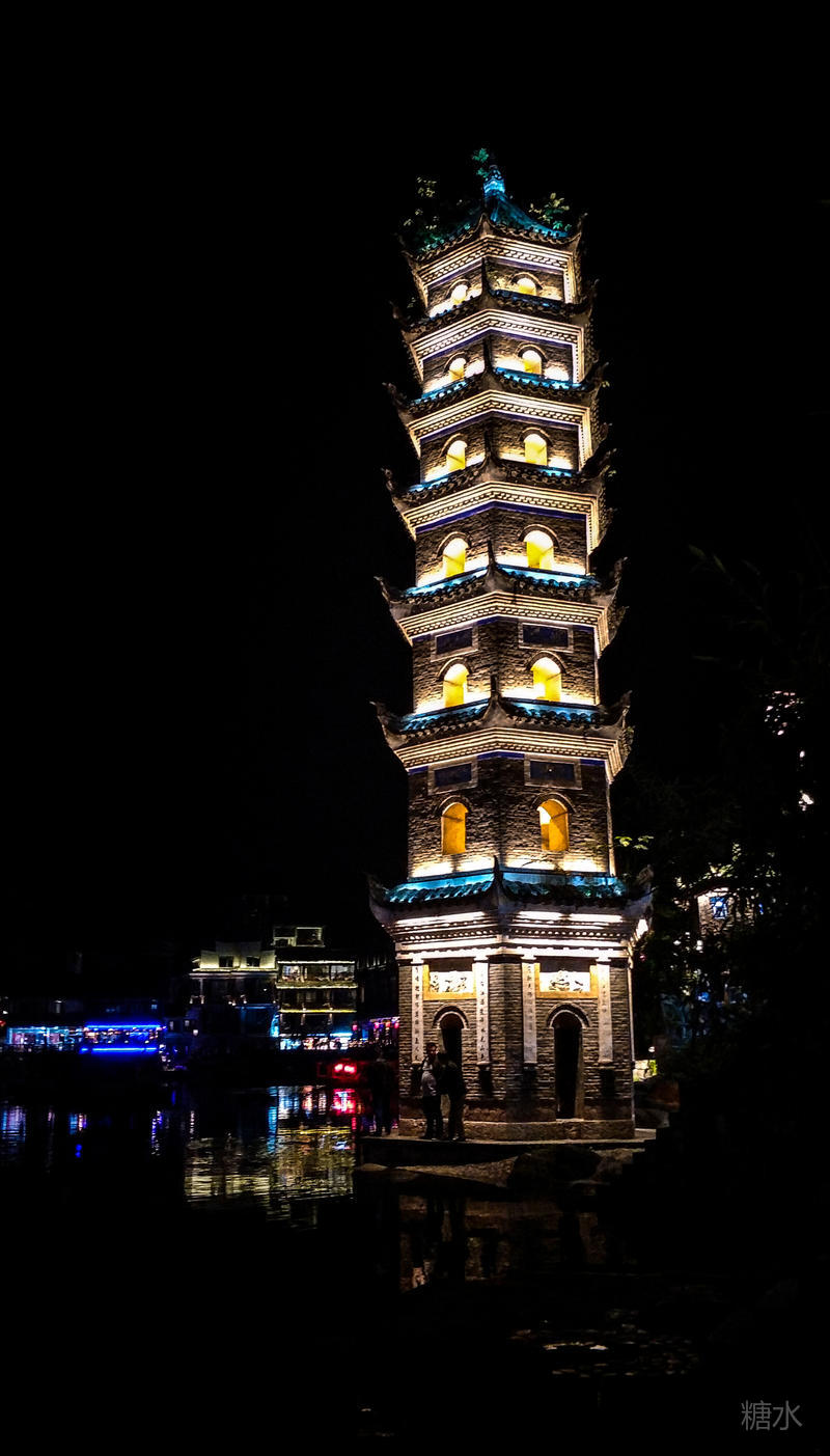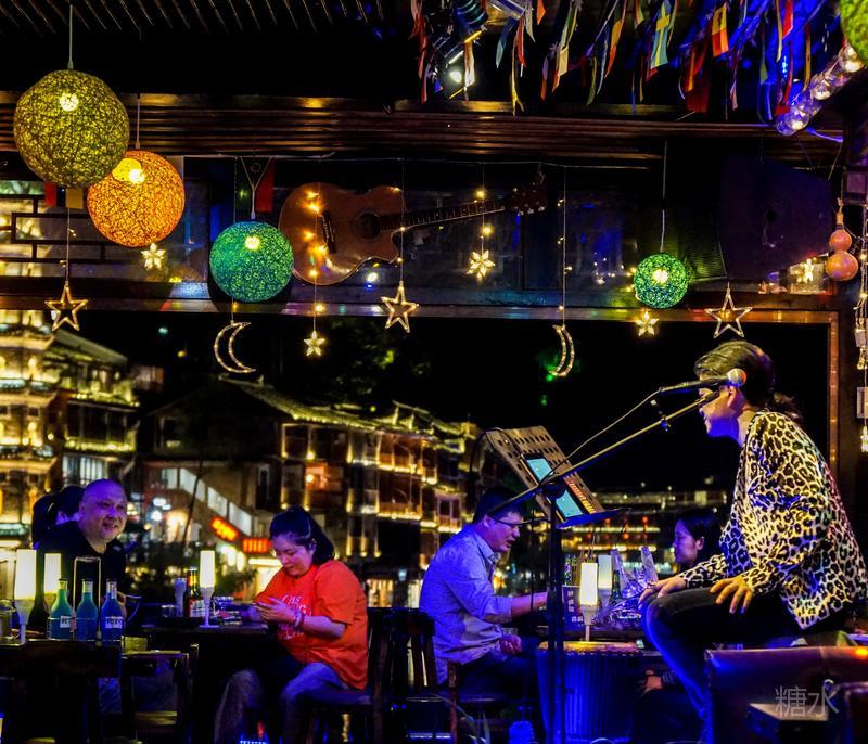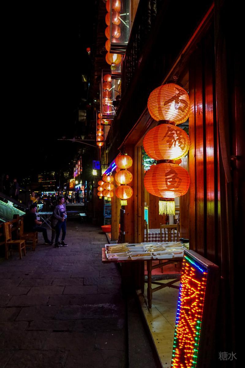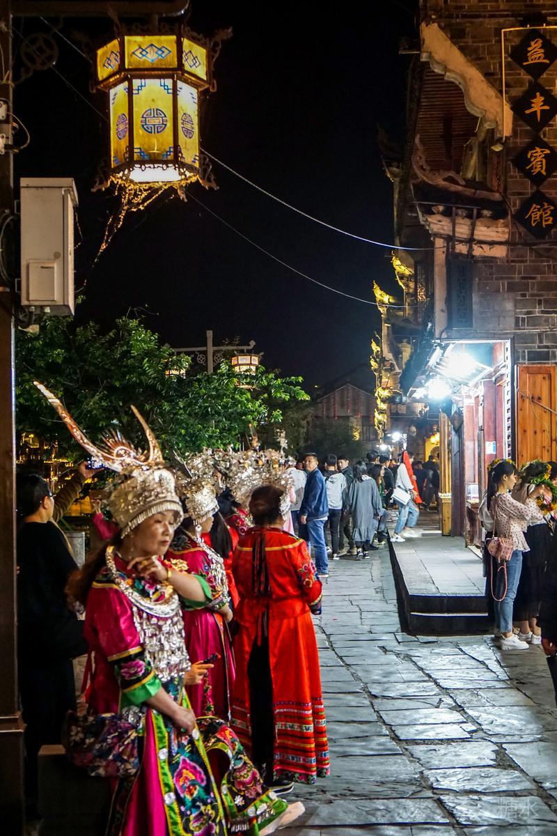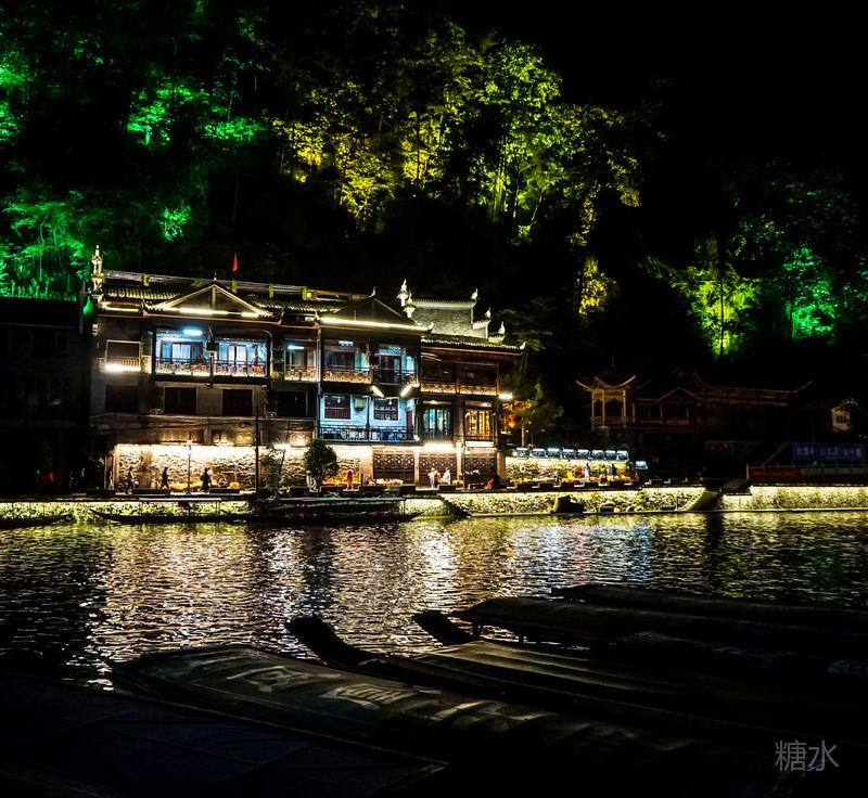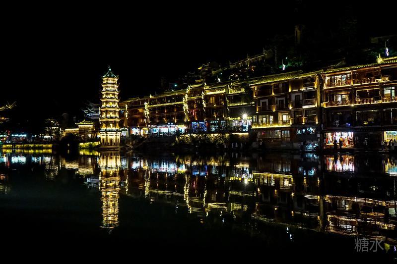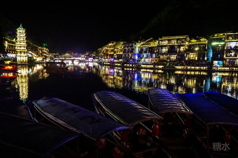 来凤凰不仅要欣赏沱江两岸若思迷幻的日景,更要欣赏沱江两岸璀璨迷人的夜景,否则,你不算来过凤凰。 用心品味凤凰古城,你会发觉这里“白天很古老,夜晚很现代”。说它夜晚很现代,是它10多年打造的旅游名牌,注入了现代元素,酒吧、美食街、特色蓬船、灯光工程等等,
