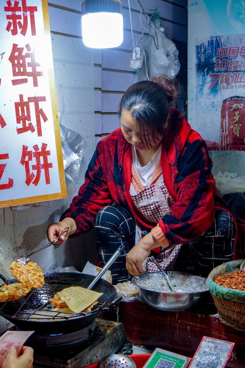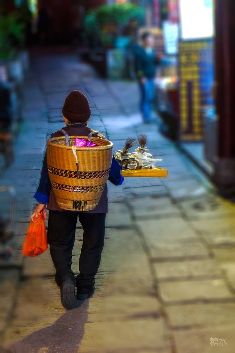 肩背右端左提的老大妈,沿街巷叫卖。。。。。。真是辛苦!