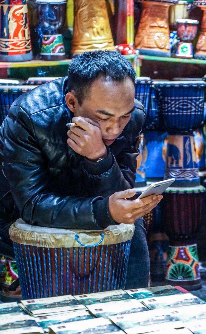 这位大叔吹起悠扬的萧。。。。。。