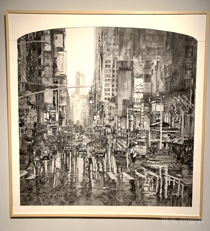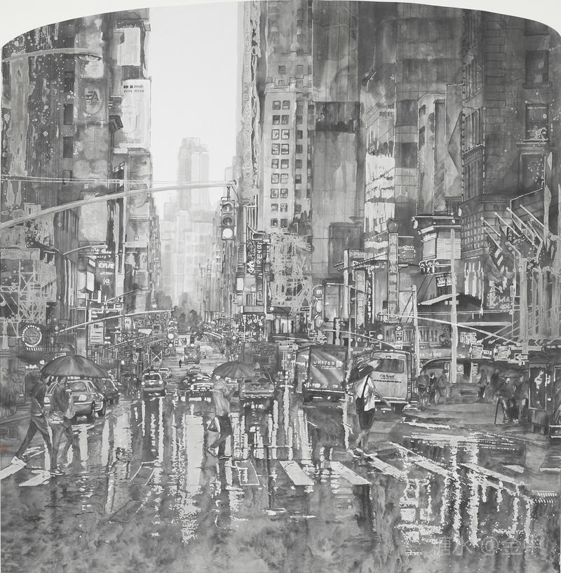 《周末夜雨》是张潘2017年创作的,今年,在上海中华艺术宫第十二届艺术节全国优秀美术作品展上展出。 《周末夜雨》是作者创作的周末系列作品的一个延伸,以传统水墨的材料结合当代城市的题材给予表现,让我们在画作欣赏中更接近都市生活的体现。画作尺寸为193x180cm。