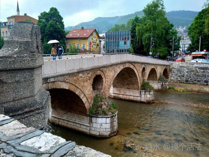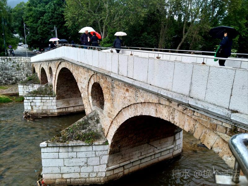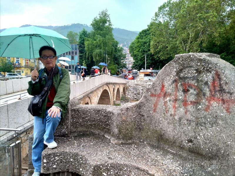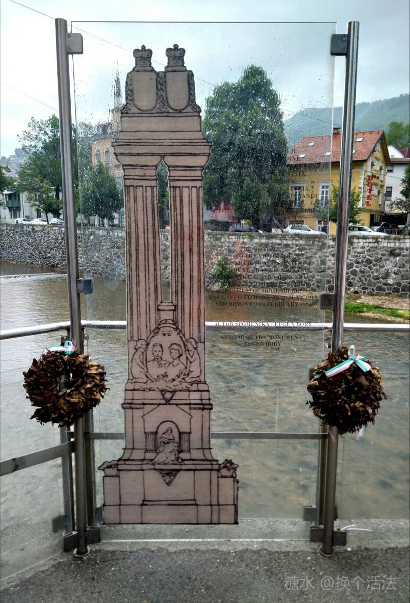 拉丁桥:由此通向波斯尼亚河的源头。这是费迪南皇储夫妇被击毙的发生地拉丁桥,这里有事件发生的标志牌和墙上的历史照片。