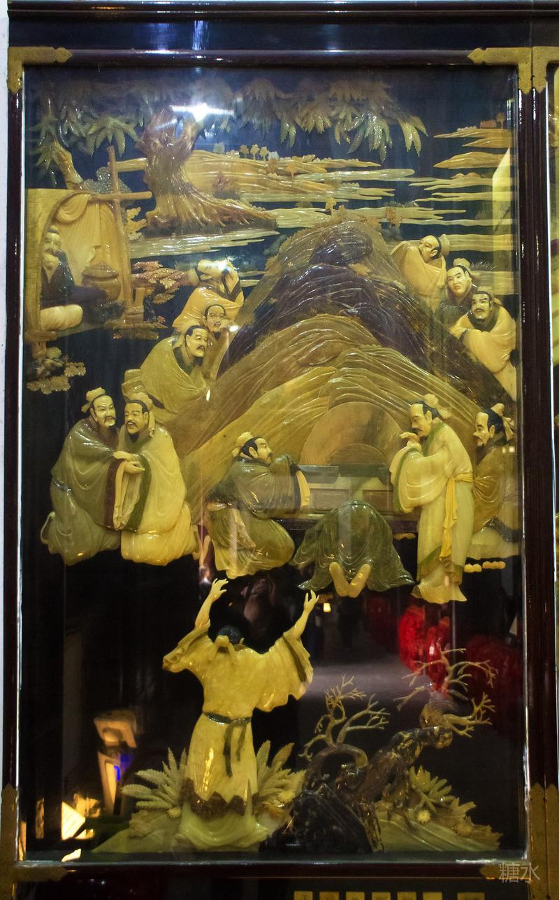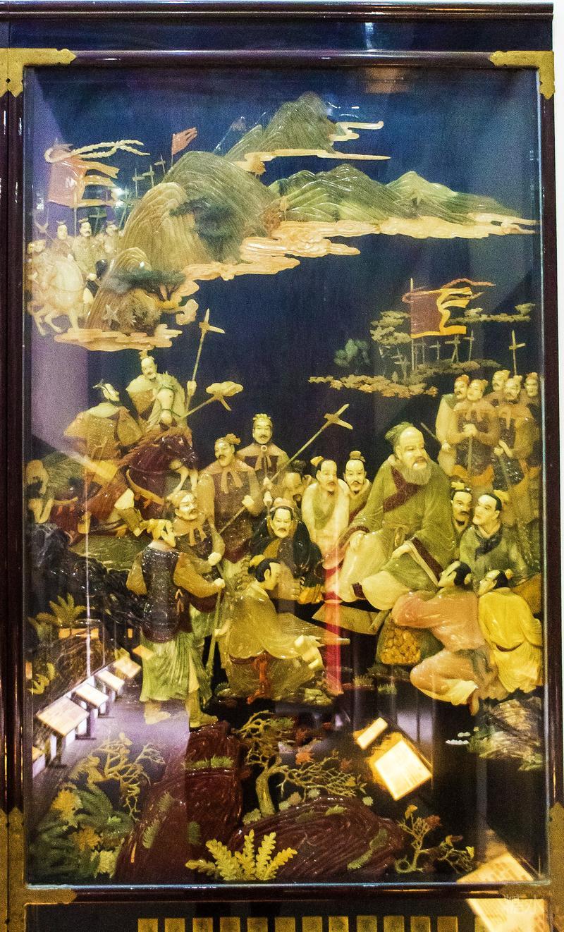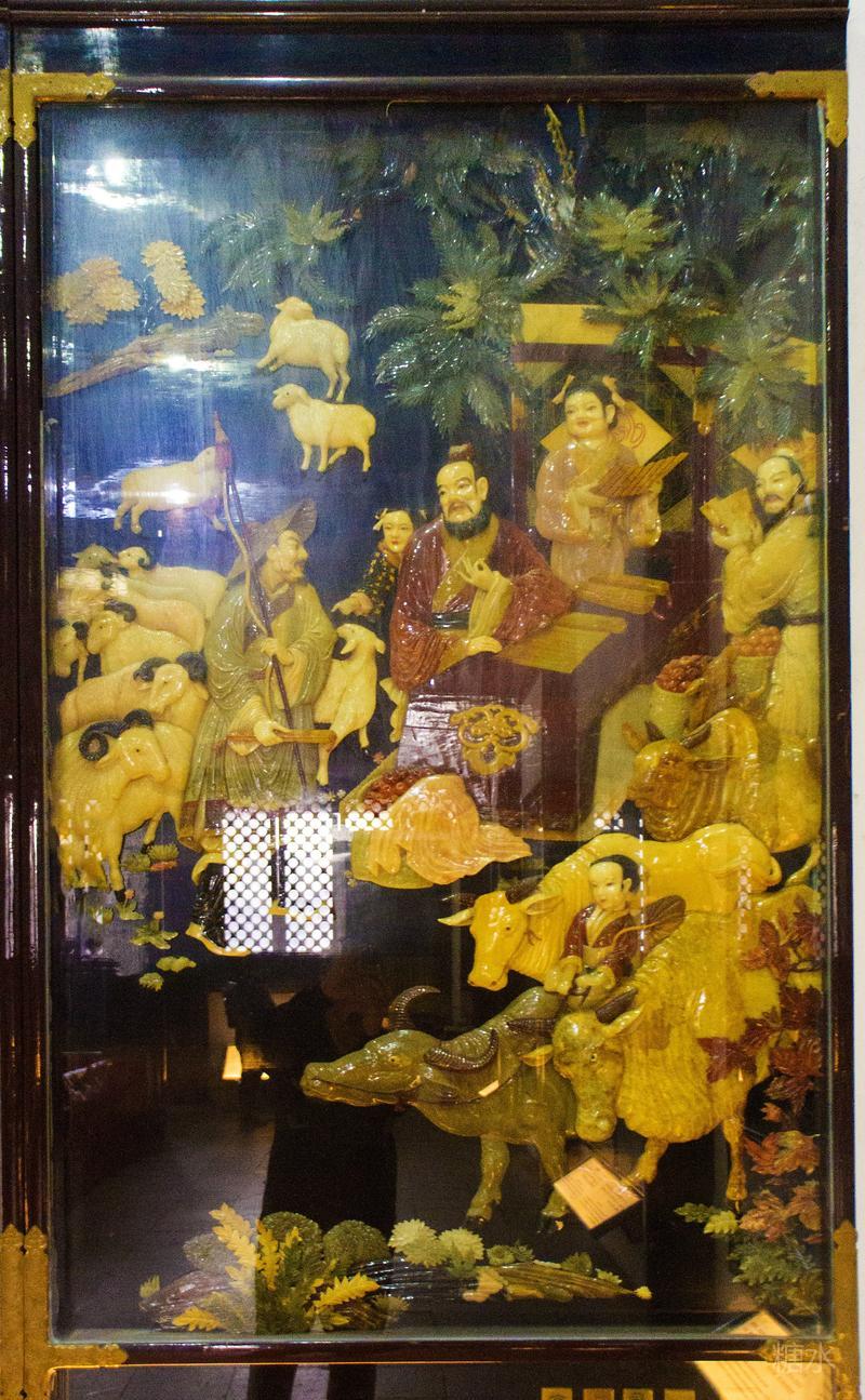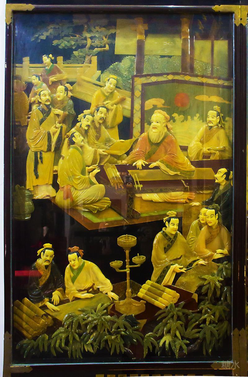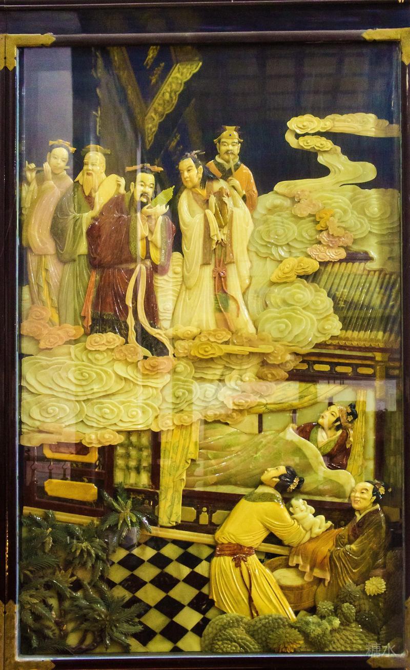 《孔子圣迹图》,是由浙江乐清200匠师采用取自浙江、福建、内蒙古、辽宁、青海、广西、广东等省(区)的内玉石、鸡血冻、寿山石、翡翠绿、周村冻等石中名晶及黄金、珠宝、罗钿等贵重的珠宝饰件,积三年之功雕成。 《孔子圣迹图》构图精练,造型完美,生动传神,不但反映了孔子的伟大思想,而且能使世人知晓至圣先师的善德懿行、人文内涵,也表达了人们对孔子的崇仰之意。