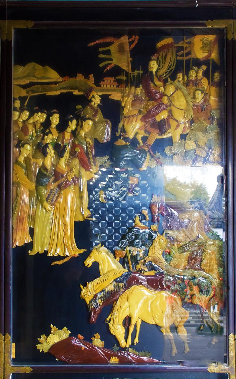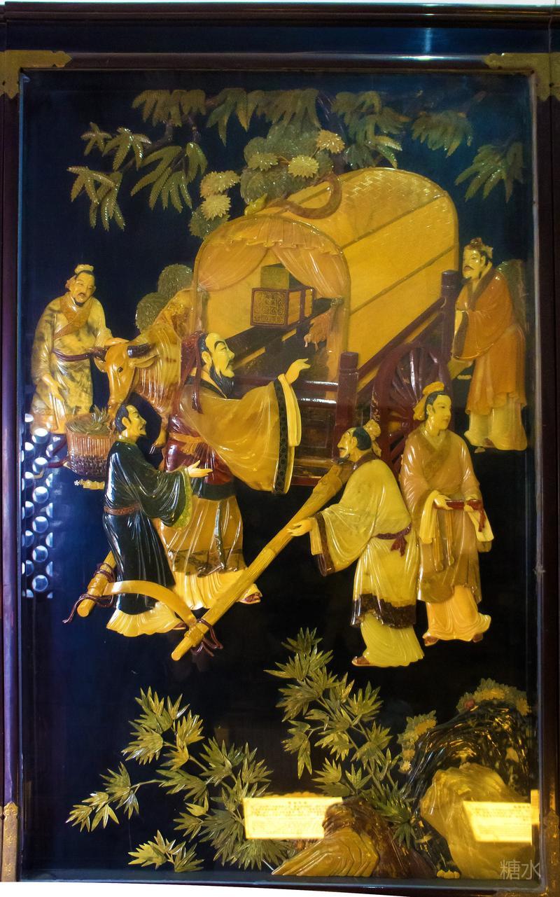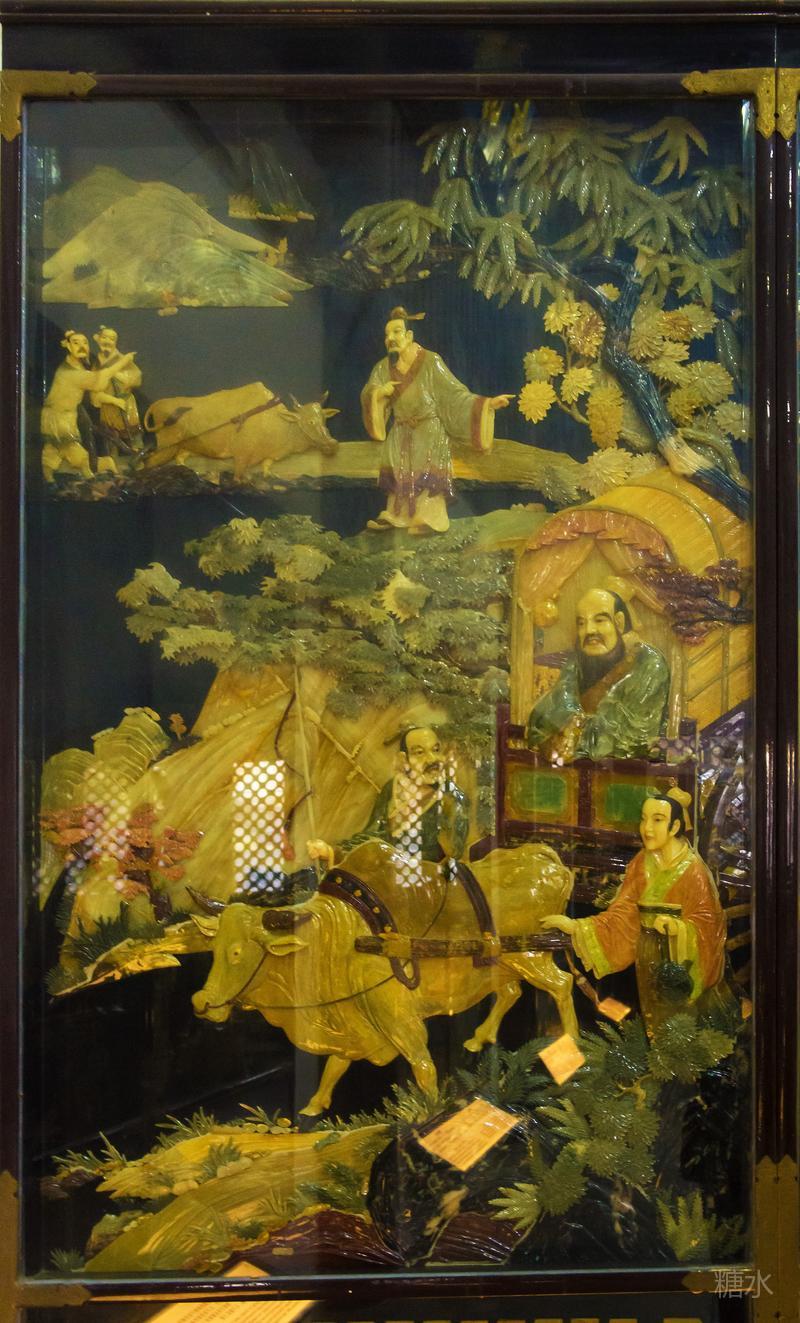 画面采用中国古典全景式构图方式,辅以考证有据的细部描述,做工精细,色泽自然,富有立体感,给人以逼真神奇之感。每幅画面高2.5米,宽1.3米,画中有人物408位,造型面目自然,栩栩如生。 将孔子圣迹图全部收录如下。因室内反光,部分作品受光线干扰噪点,是为缺憾。