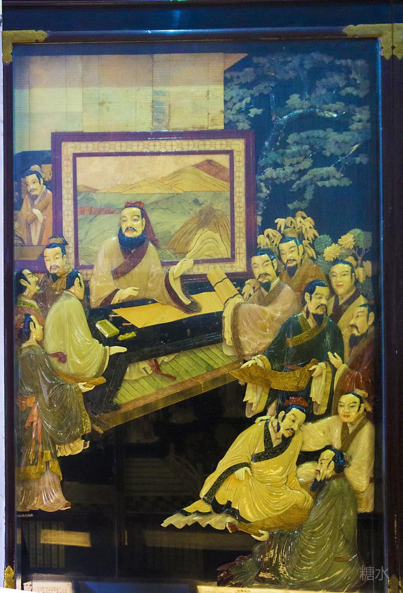 2019-6-2在南京夫子庙大成殿四周墙壁上,有38幅反映孔子生平事迹的镶嵌壁画,为《孔子圣迹图》。