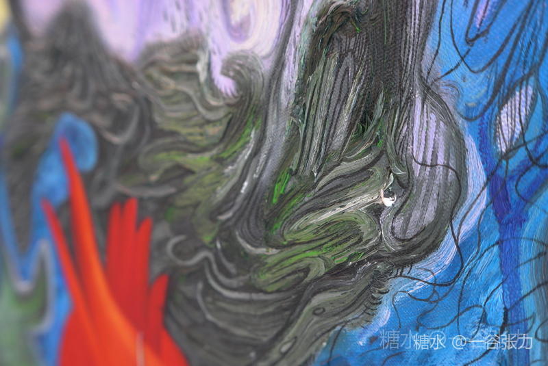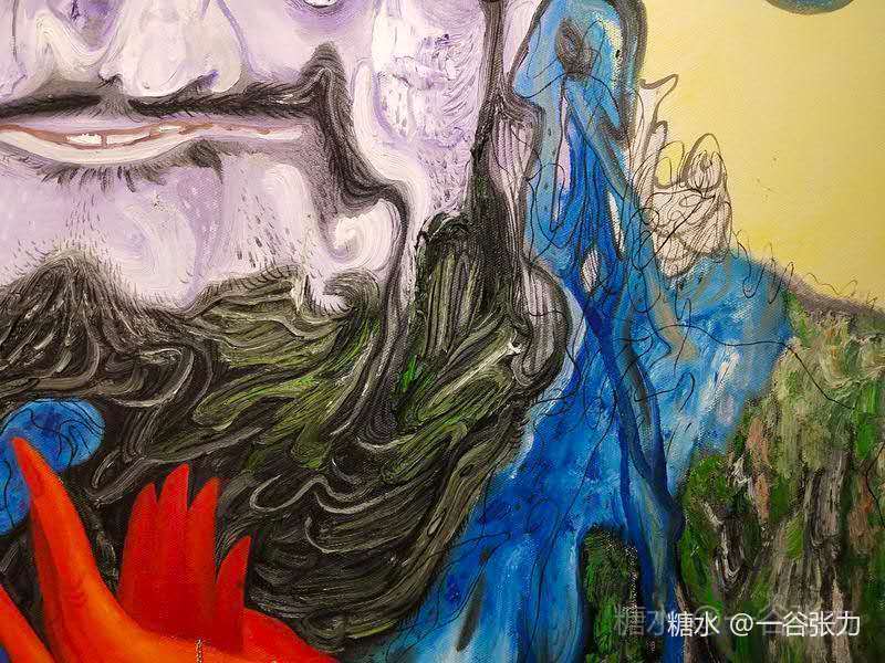 尽管如此,一谷张力仍然怀揣着艺术家的良心,为我们为世人为自己重塑了一个形象,无论扭曲、摇摆、挤压、纤缠、霉菌丛生,但这是艺术家笔下的生命意义、思考、追求、批判。从文化根性上去述说,去解读孔子和艺术家自己,作品上的每一条线都让我们发现一个多元的空间延伸,每块颜色都是作者与观众的艺术“合谋”。