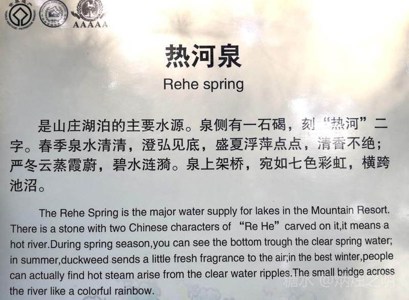 热河泉位于避暑山庄湖区东北隅,是山庄湖泊的主要水源。清澈的泉水从地下涌出,沿长堤汇入武烈河。热河全长700多米,在一般地图上找不到它有踪迹。它是中国最短的河流。冬季水温为8℃。泉侧有巨石,刻“热河”两字。
