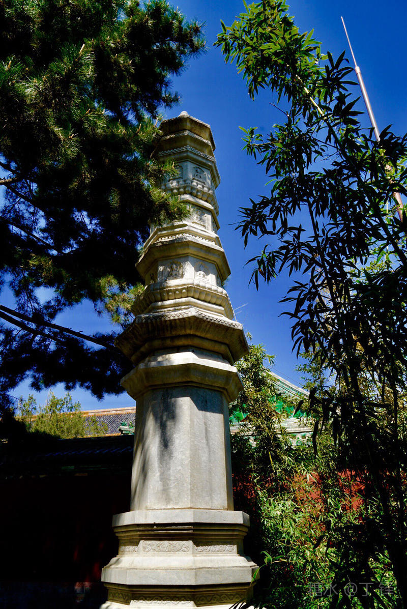 门内东西为钟鼓楼,钟鼓楼北侧,左、右各有四方形石座,上竖八角形石幢。