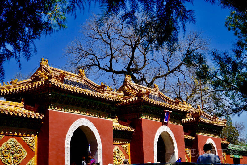 沿着北海公园北岸漫步,向西来到西天梵境和九龙壁。