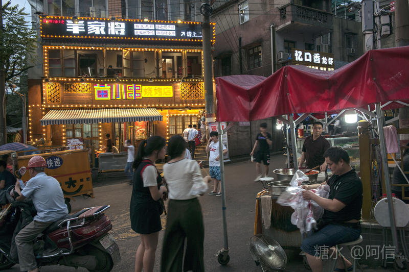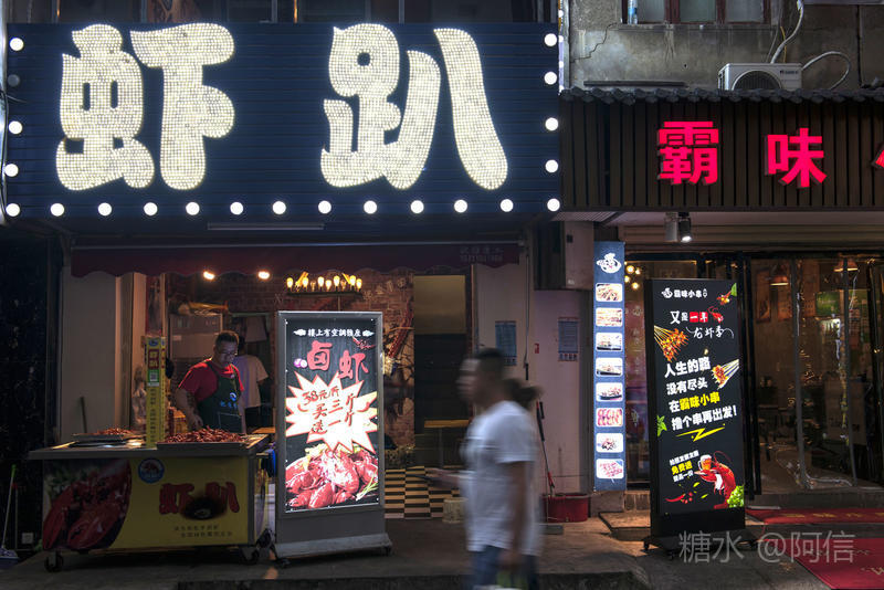 裕南街夜市有很多龙虾店。辣味,是裕南街的一种主要味道。