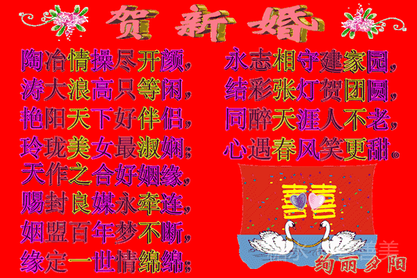 郎是词.媳是谱,你俩就是一首和谐的歌。 天作之合,鸾凤和鸣。 愿快乐的祝福声和歌声永远伴你们同行,永浴于无穷的快乐年华。《㊗️新婚快乐》!