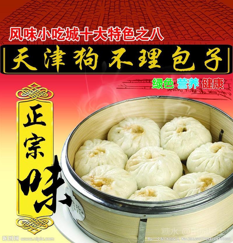 狗不理包子是一道由面粉、猪肉等材料制作而成的小吃,始创于公元1858年(清朝咸丰年间),为“天津三绝”之首,是中华老字号之一。狗不理包子的面、馅选料精细,制作工艺严格,外形美观,特别是包子褶花匀称,每个包子都不少于15个褶,刚出笼的包子,鲜而不腻,清香适口。