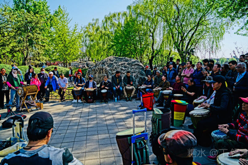 这支鼓乐队由各式人群组成,共同的爰好是击鼓,看他们有章有法击出的美妙乐曲,可见训练有素。