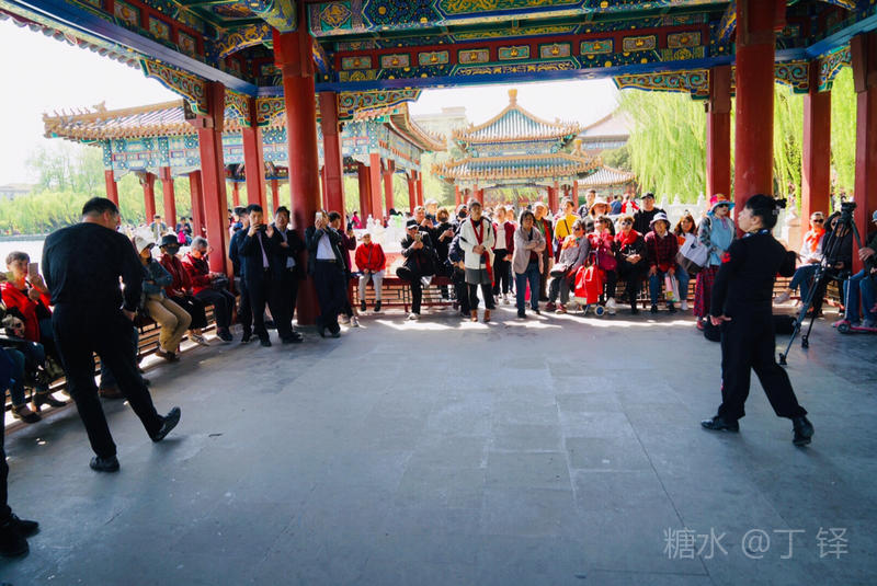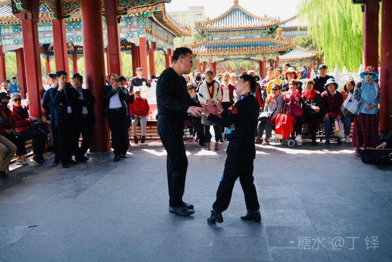 五龙亭是白海最热闹的地方,原来这里有合唱队、铜管乐队,十分热闹,隨着静音活动的推广,已经难觅踪影。不过这对跳二人转的吸引了不少眼球。