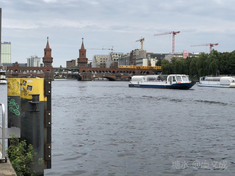 我们走过“勃兰登门”、威廉大街、世界文化遗产“博物馆岛”、犹太人纪念碑、查理检查站、柏林大教堂、马恩广场,感受12世纪以来的文化遗存。最后,我们停留在了施普雷河畔的柏林墙遗址下。这是一段柏林墙倒塌后留存下来的遗址,在风雨中透着历史的沧桑。涂抹着各种画图的墙面,寄托着人们对这段历史的回忆。我望着初夏的施普雷河,微风刮过河面掀起了微澜的波浪,不知道许多历史的真相是否会随着河流的冲刷而淡薄?