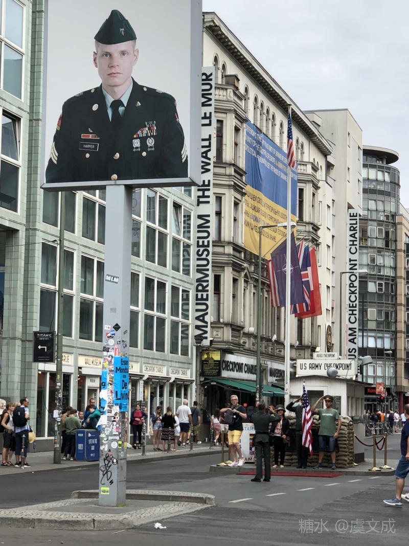 这是第二次世界大战结束后,以美国为首的资本主义阵营与以苏联为代表的社会主义阵营在划分世界版图。这个对立的集中点就在战败国德国的柏林,一堵长达180公里的“柏林墙”,把这个城市一分为二,东柏林属于德意志民主共和国,归苏联社会主义阵营;西柏林属于德意志联邦共和国,归美国为首的资本主义阵营。两种意识形态、两种社会制度在两边进行着五十多年的“没有硝烟的战斗”。所以,到柏林再看看这一段的历史,也算是我期待多年的愿望了。