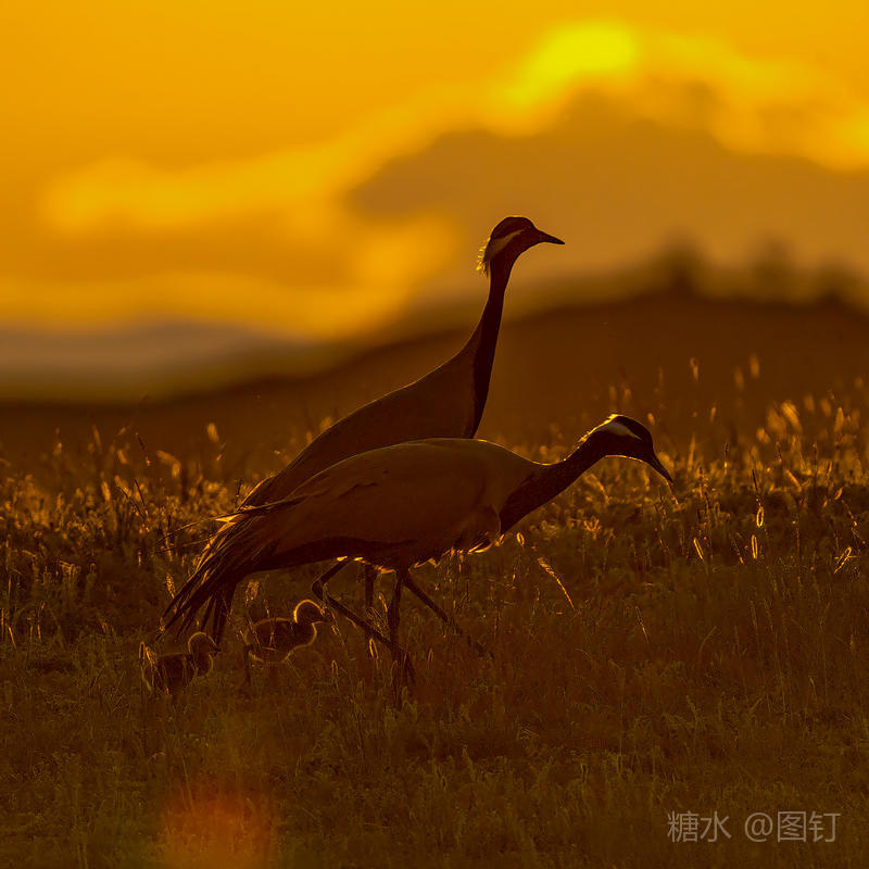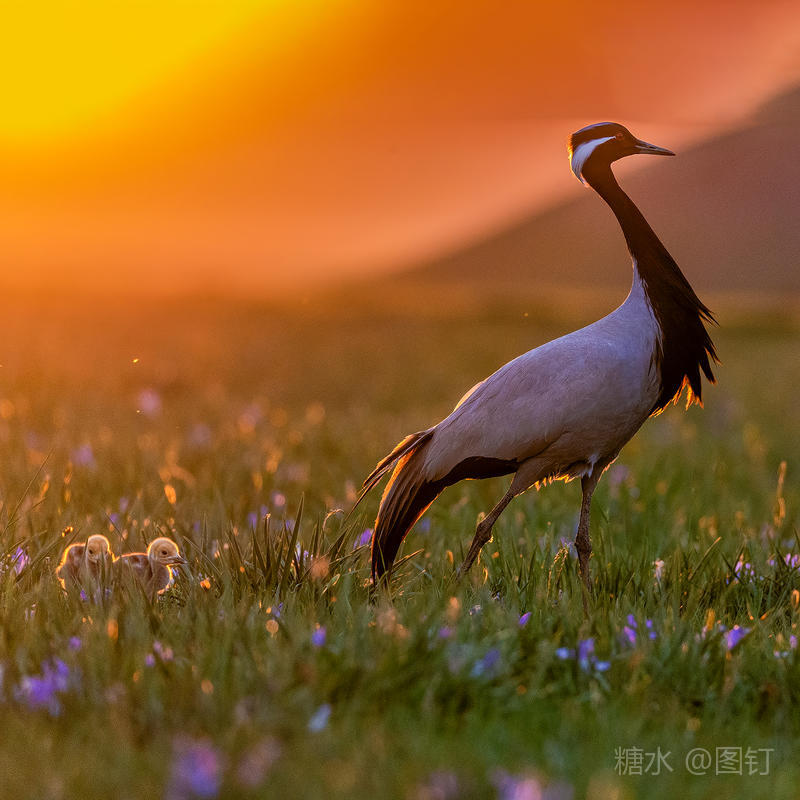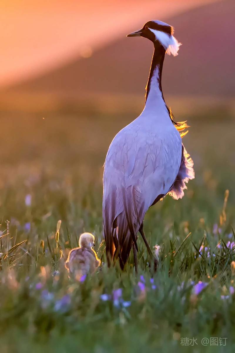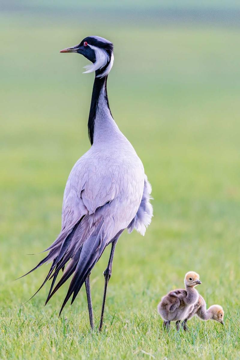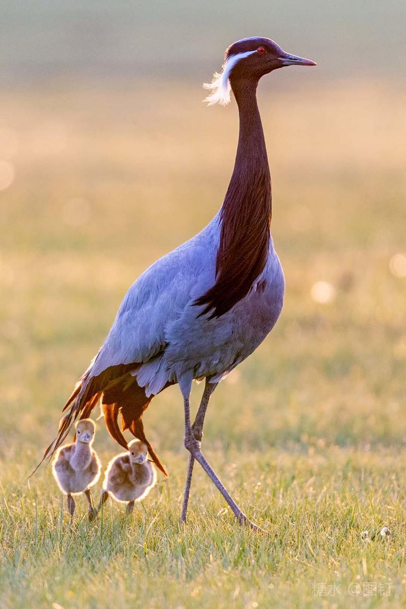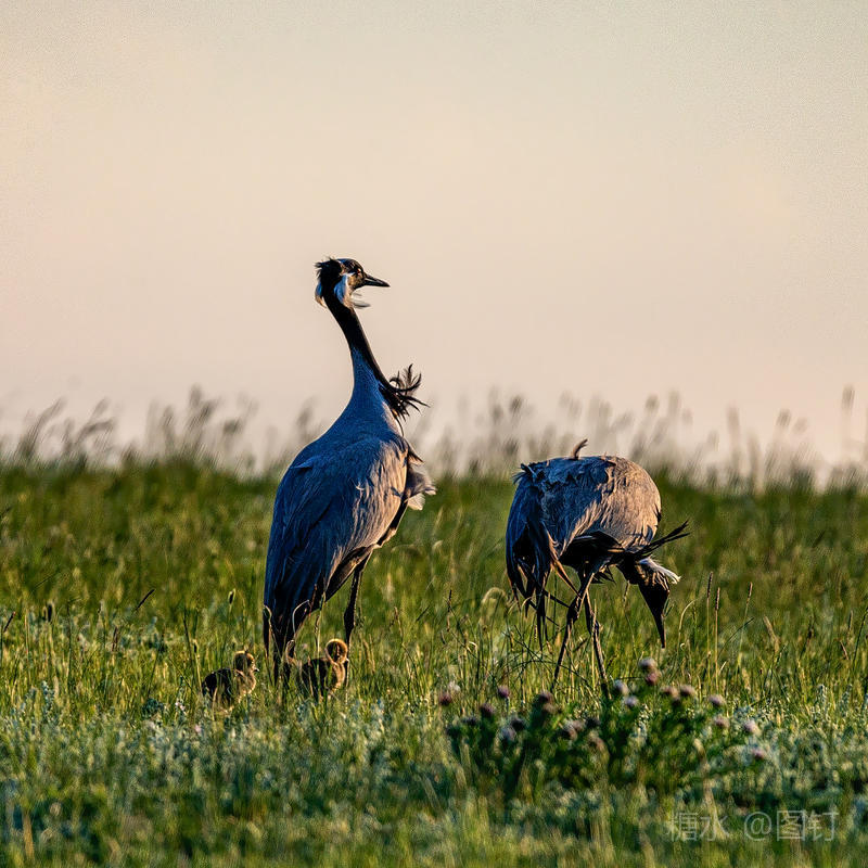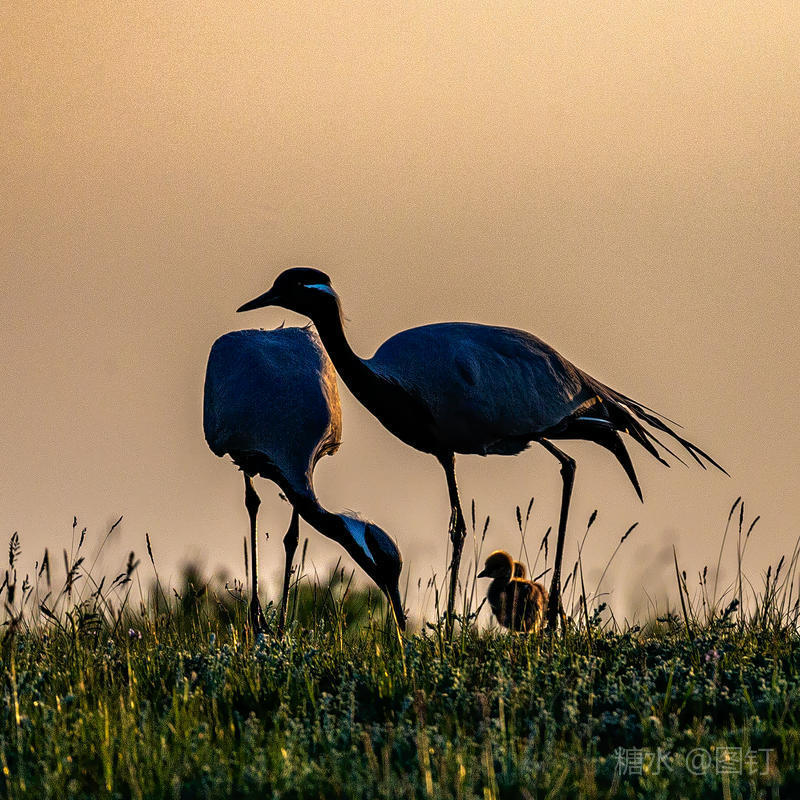 蓑羽鹤是全球15种鹤中体型最小的鹤,是人们最喜欢的鸟类之一。曾经逐草而居,敬畏大自然的蒙古民族,以鸟为伴,如今依然保留从不伤害鸟类的传统民俗,这是蓑羽鹤钟爱草原的原因之一,每当蓑羽鹤来到草原,预示着雨季的到来,它是蒙古族人心目中的吉祥鸟,仙鹤。