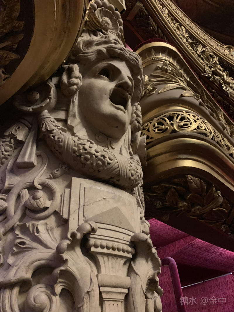 剧院演出舞台四周的艺术立柱上的雕塑艺术作品,与歌剧魅影是完美的结合在一起。