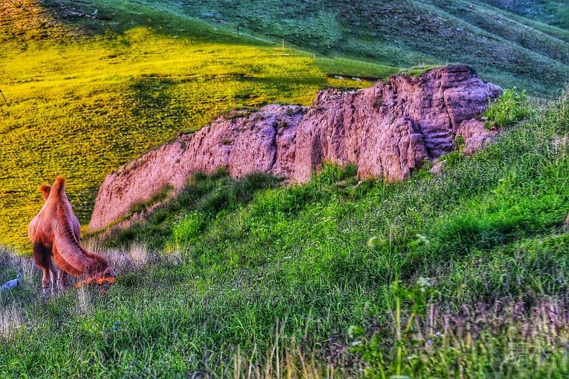从青海去张掖荒凉的227线国道上,傍晚时分,途经一地方,有座雄伟的建筑诱惑着我们,便停车寻找宾馆住宿,期间得到了藏民的答复,我们所在的位置为峨堡(镇)古城,安排打理好房间,翻越铁栅栏进入古城遗址,其实除了一处残垣断壁外,没什么好看的,你不了解当地文化,光看这些是没什么用处的,因为一直本身都被破坏了,也看不到有价值的东西,何况大门都是新建的而已。经历了数百年的风霜雪雨峨堡古城遗址,长满了绿草,草地上有一只骆驼,不停地边走边享受着青草美味,笔者傍晚和晨曦,两次漫游在古城内,仰望天空真可谓“奇幻多彩”,那云好似画家用大油刷在挥洒作画,真是视觉的享受! 峨堡古城约始建于公元 1206— 1279年间,海拔3645米,系通往河西走廊的交通要道,也是祁连至门源、西宁的必经之地,是古丝绸之路南路上的重要驿站、 茶马互市及军事要塞,素有青海北大门之称。