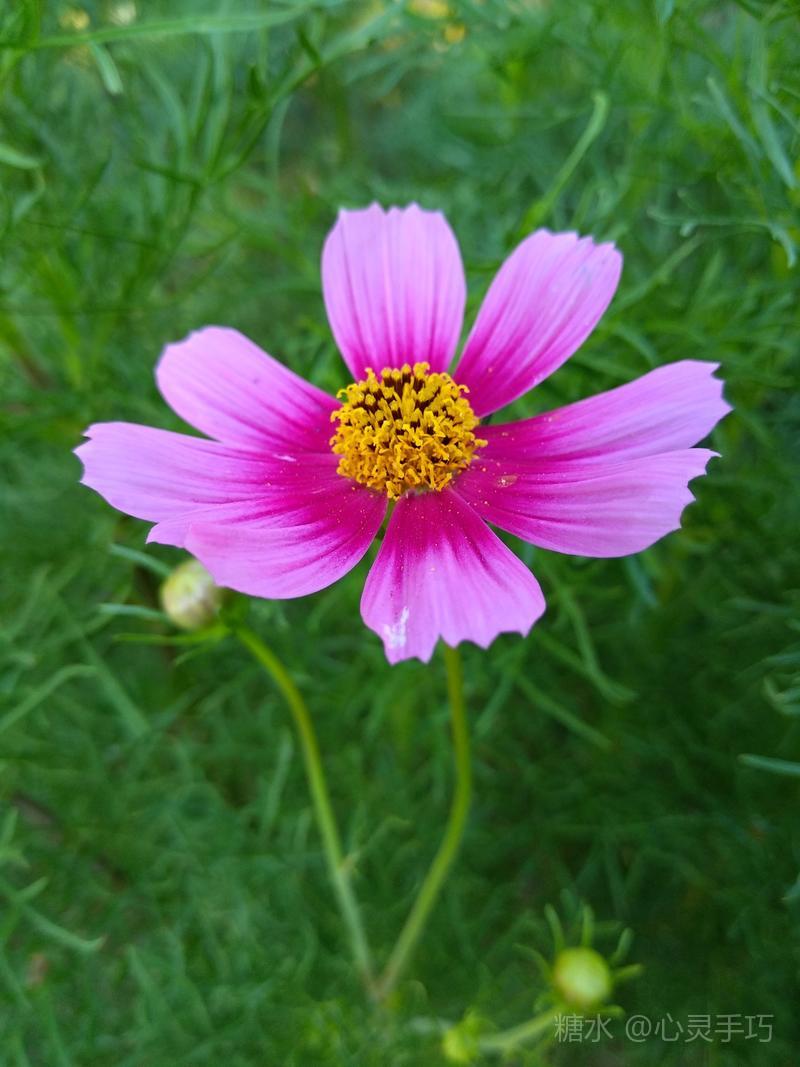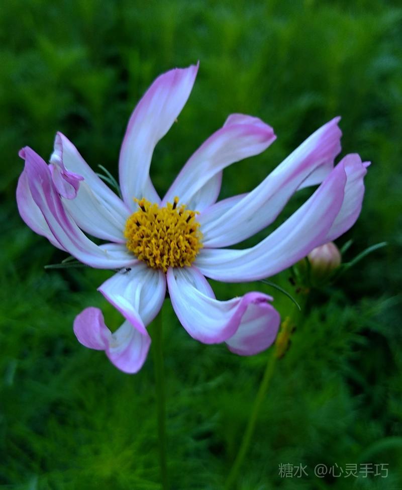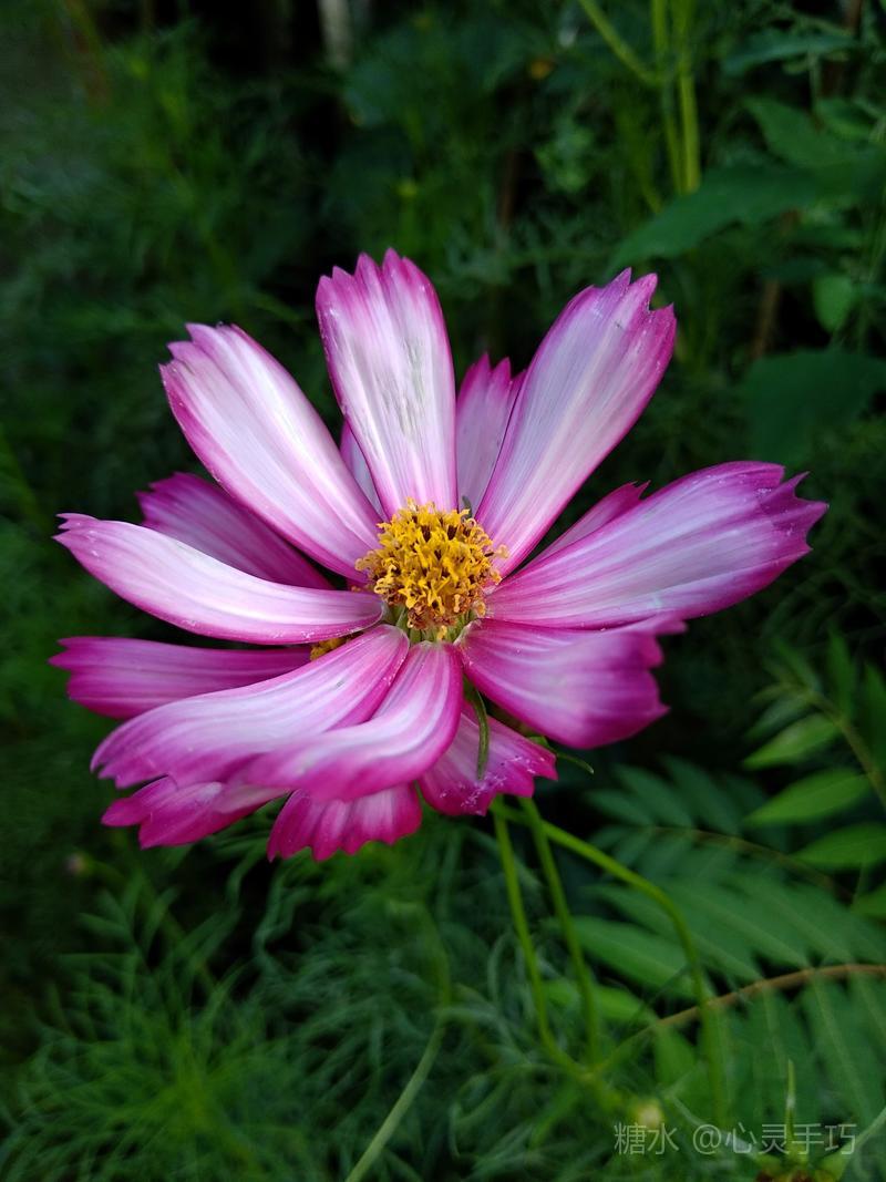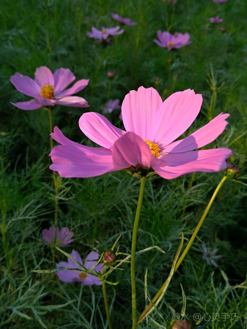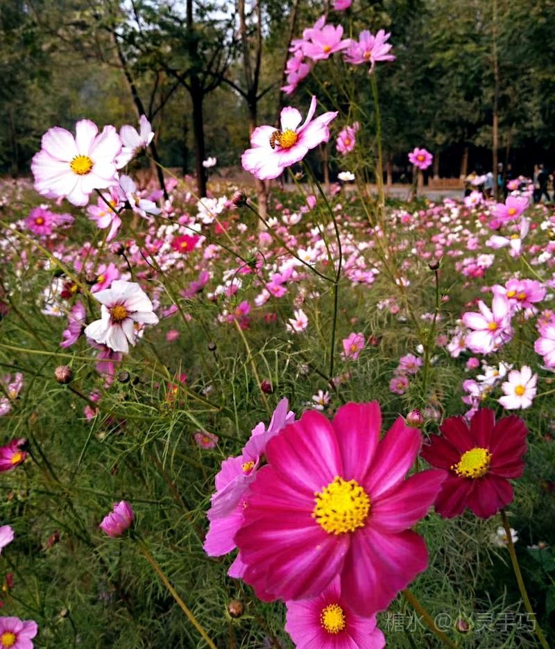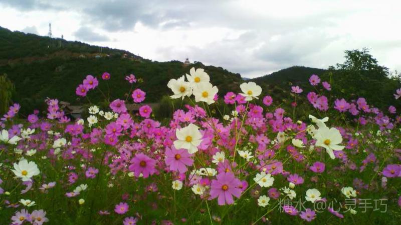 格桑花 每年秋天花籽成熟以后 自然落地 第二年 花儿就能生根发芽 格桑花 高原上的神花 淡淡的幽香令人陶醉 你是大自然中 最美丽的色彩 大片大片 漫无边际 浸染天宇 与蓝天白云 构成一幅美丽的画卷