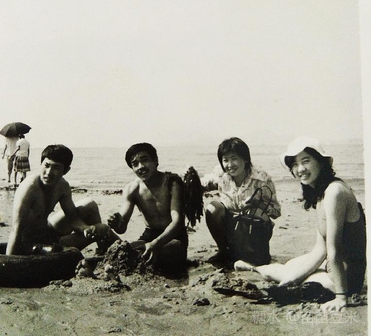 恋爱时期我(右一)和他(左一)与四姐一家在烟台海边。