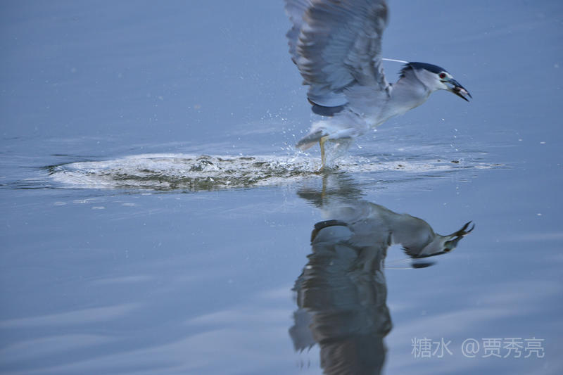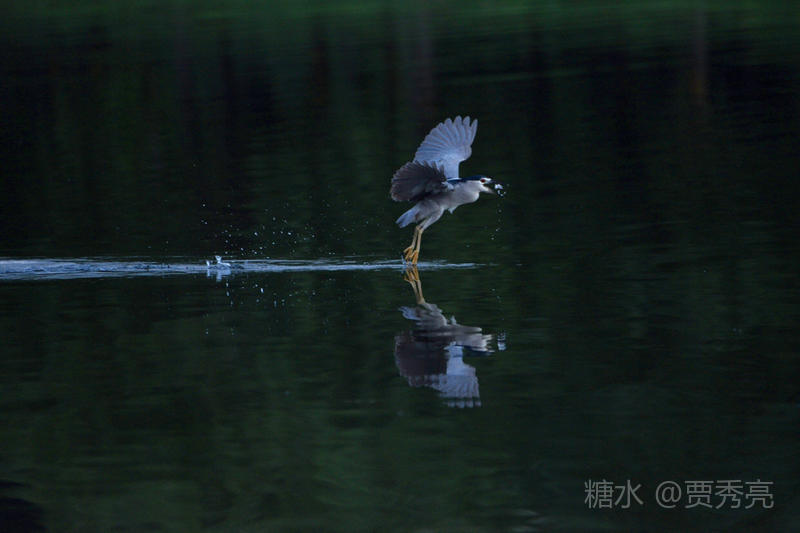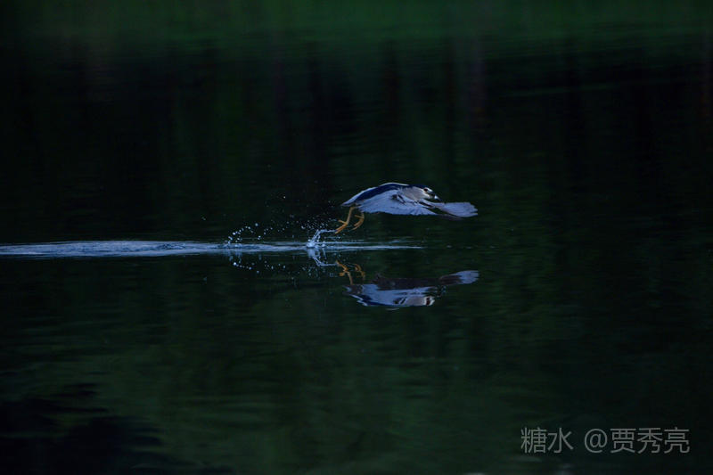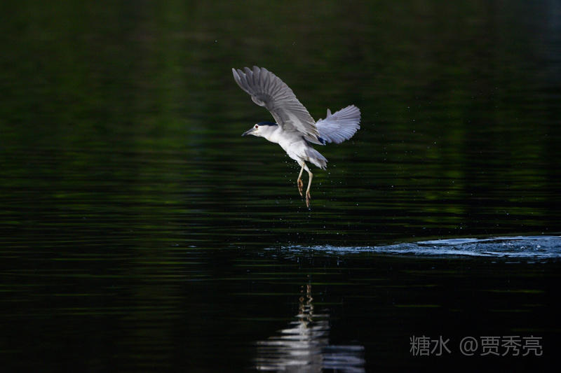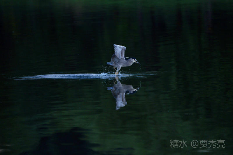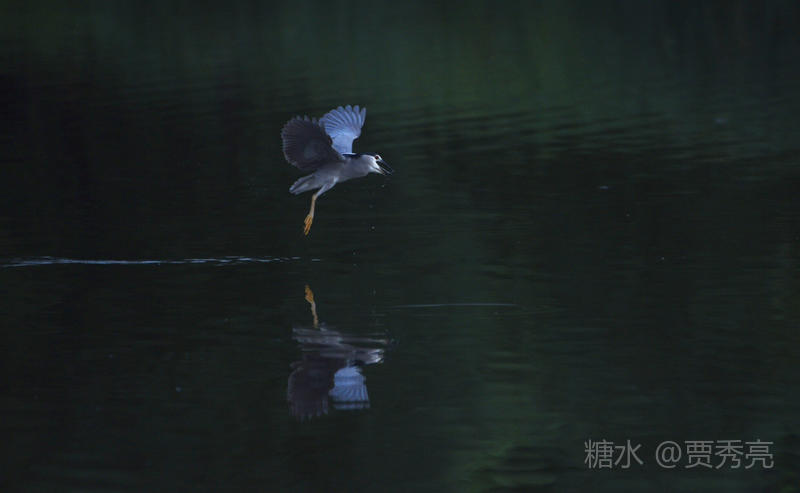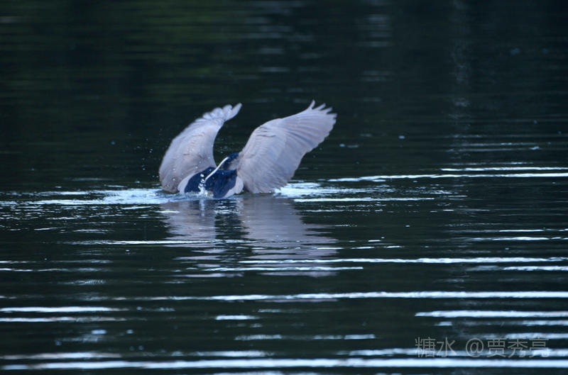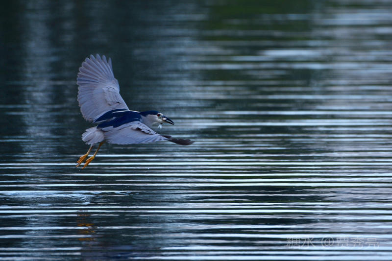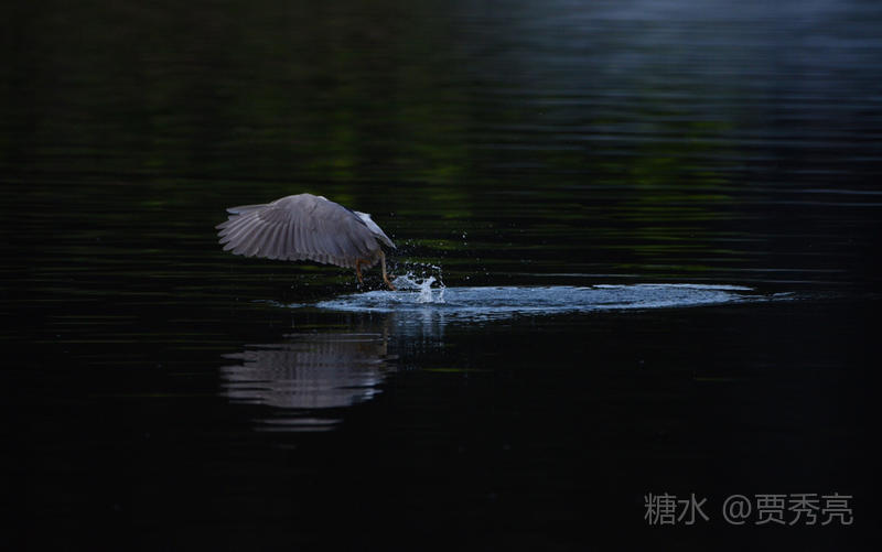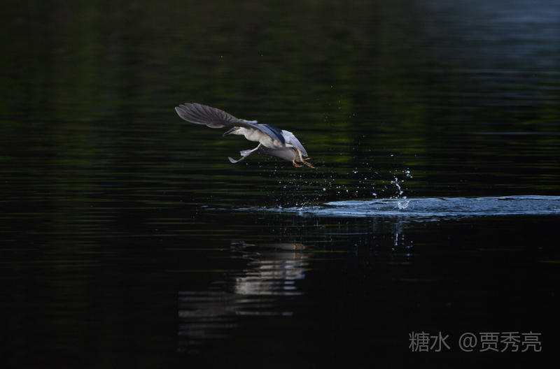 动作美如画 舞美在水面 夜鹭展劲翅 飞翔奔篮天