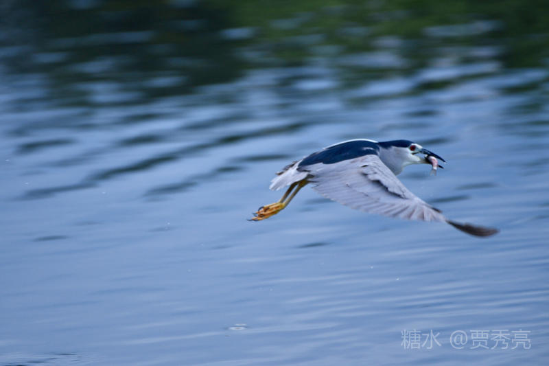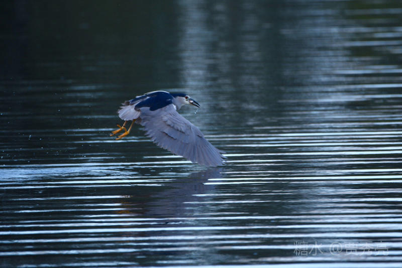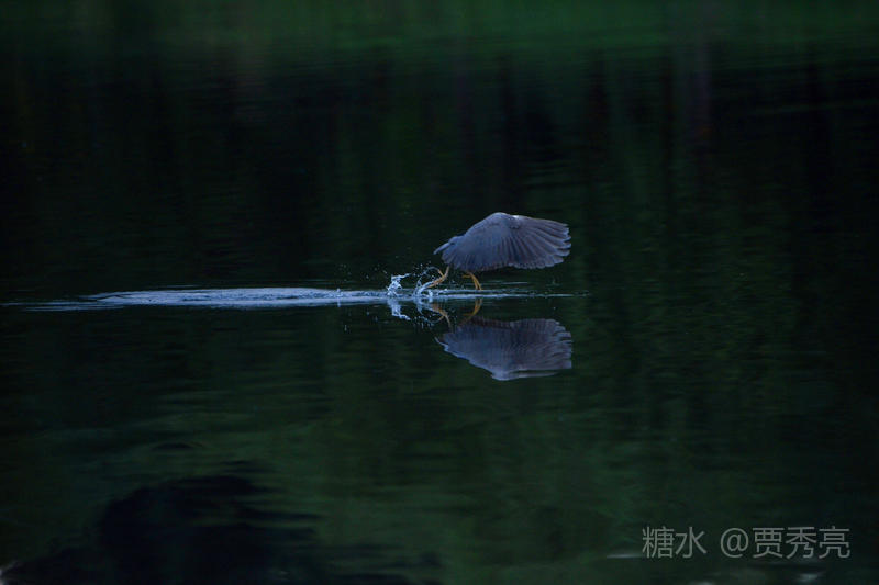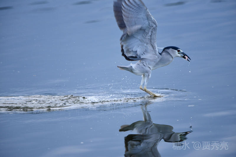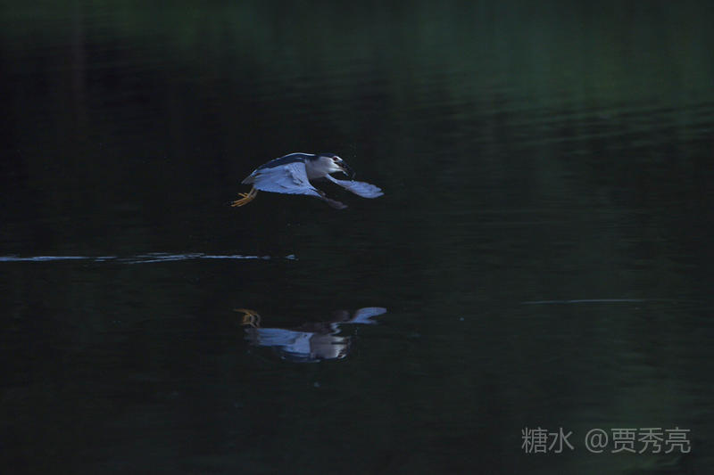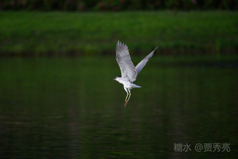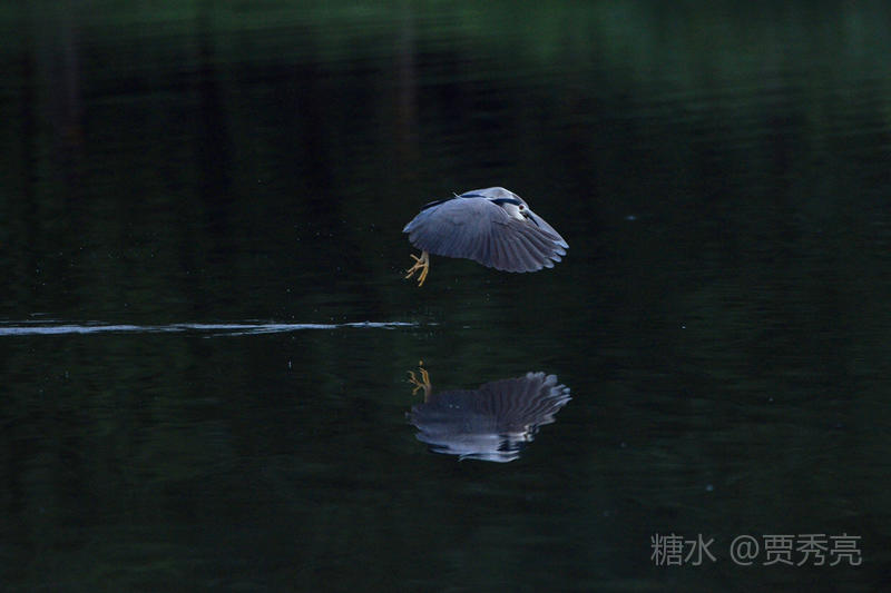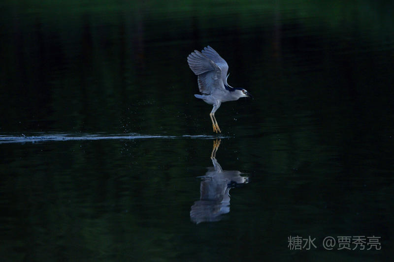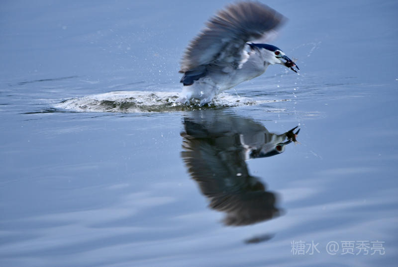 动作美如画 舞美在水面 夜鹭展劲翅 飞翔奔篮天