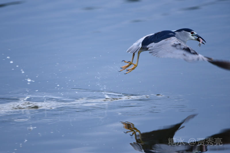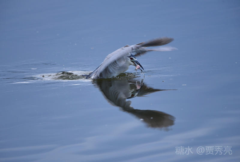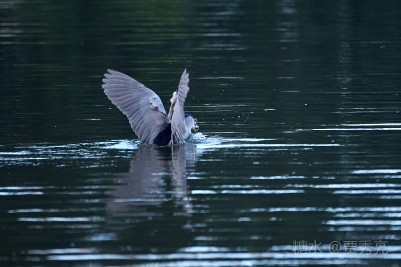 画面捕鱼展劲爆 夜鹭雄风展翅飞 捕捉瞬间美如画 自我陶醉在画中