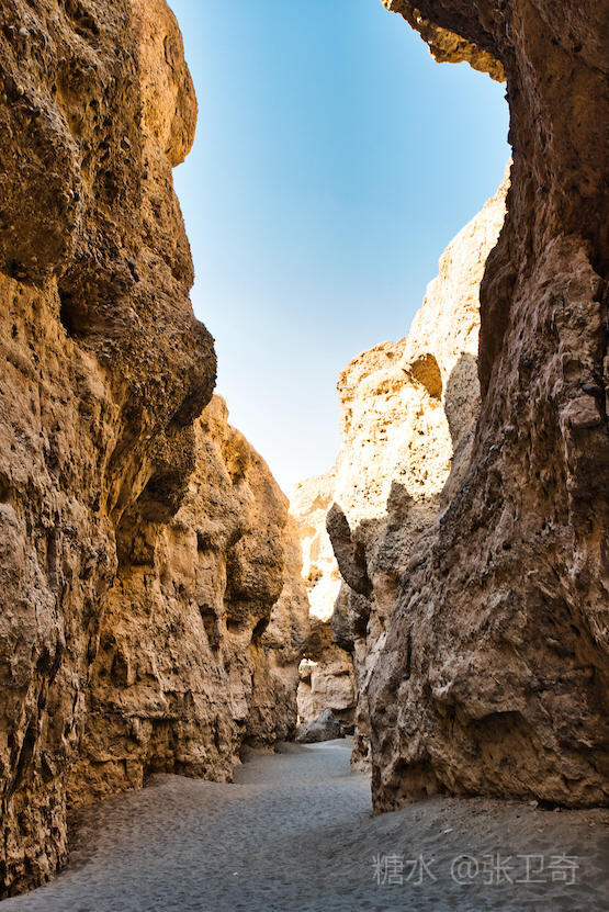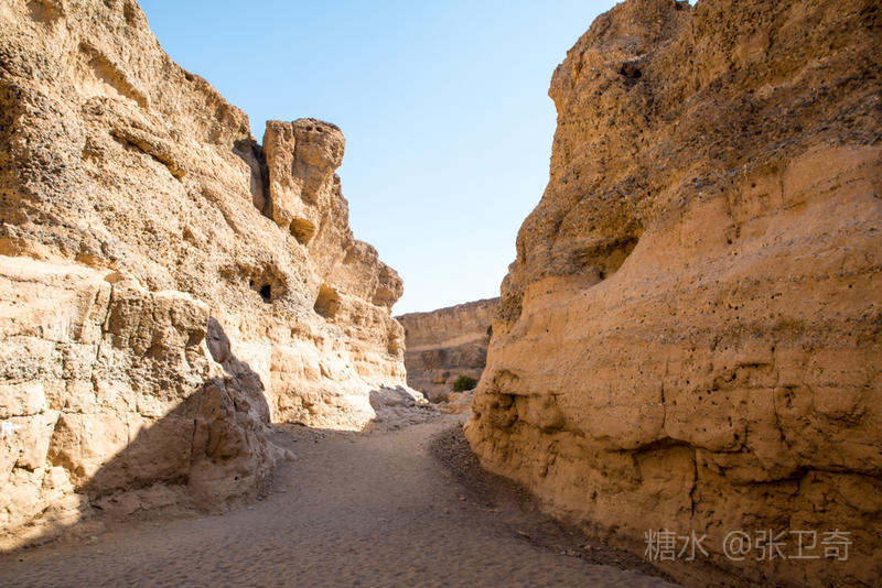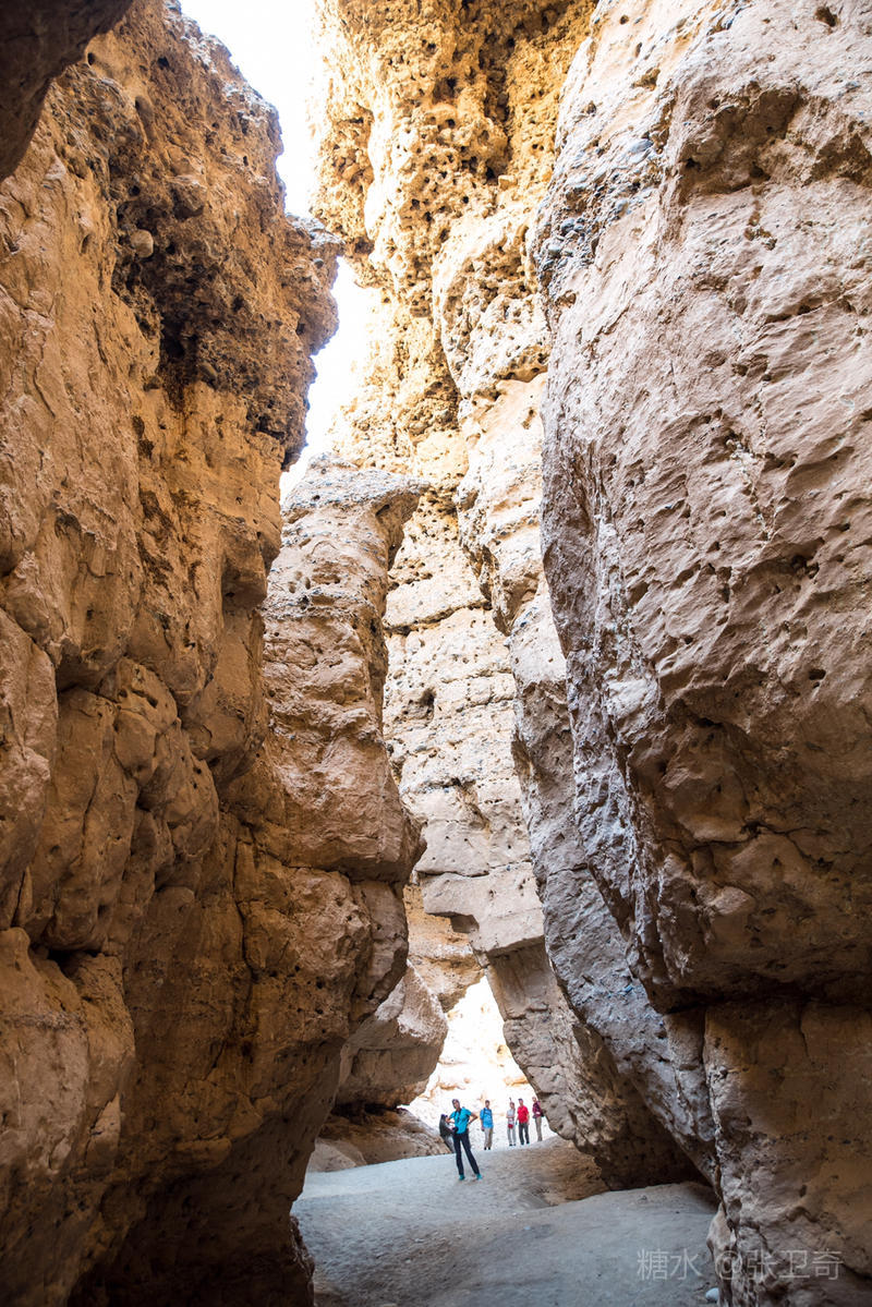 远处看去,这个峡谷十分不起眼,可是越往下走,越显得高大和奇特。两面高耸垂直的山壁,从上到下直上直下。道路极陡,很多地方十分狭窄,让人望而生畏,真可谓”山峻高而蔽日,下幽晦而无雨”。走在渠道中,曲曲折折,两案高壁,似乎直冲云天,就如一把把竖直的利剑,将天分别。