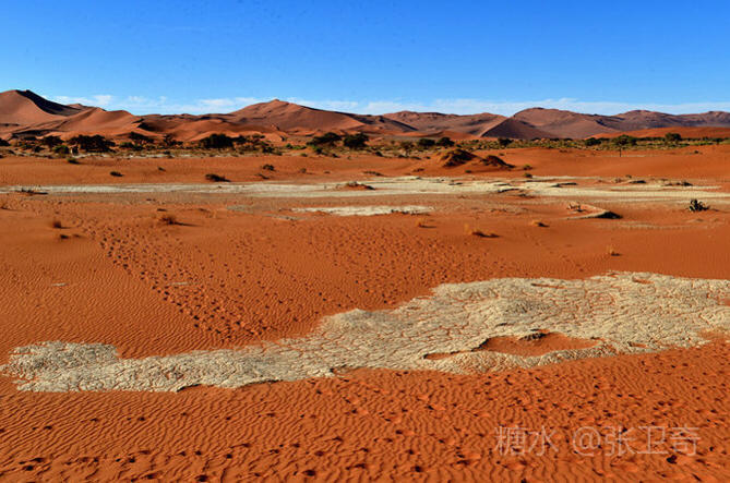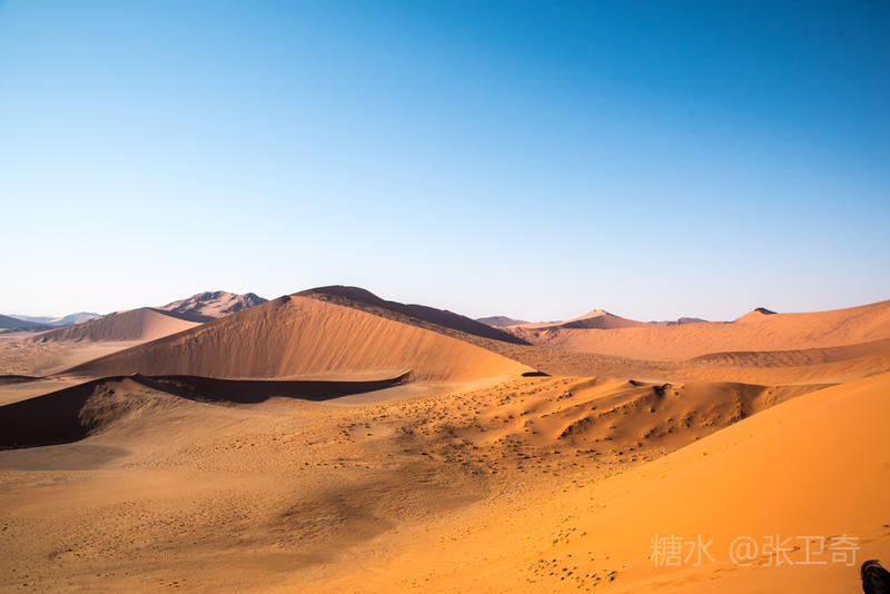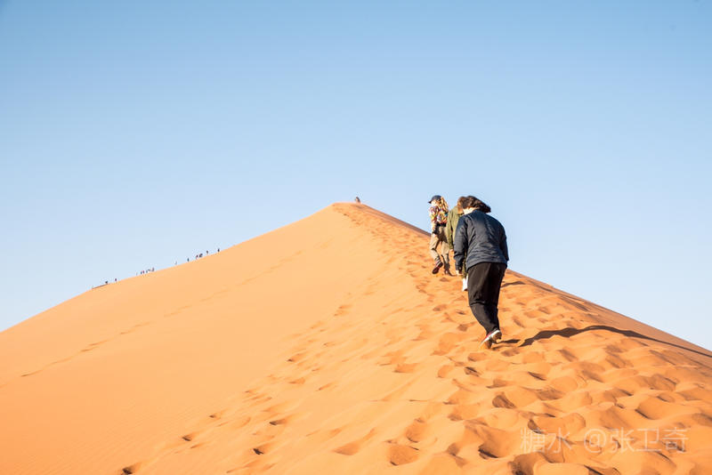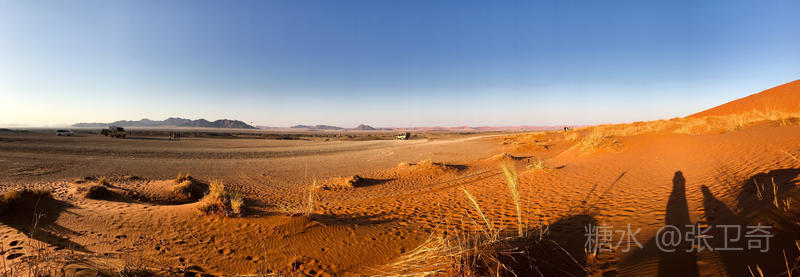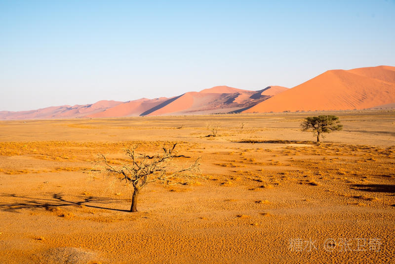 第二天一大早,我们开车进入索苏维来沙漠国家公园。这里虽然稀有人烟,却望眼都是多姿多态的铁红沙丘。