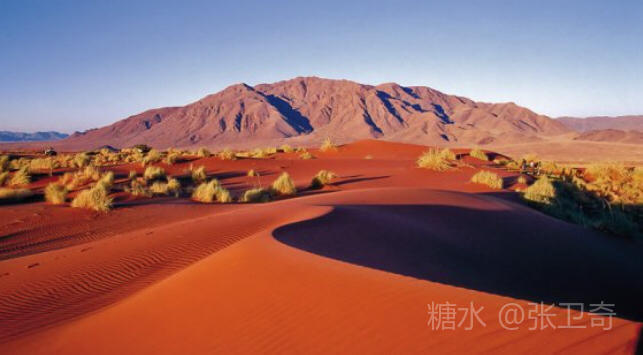 这是世界上最古老的沙漠,也是人生值得踏足一次的沙漠。那些独特的铁红沙丘在太阳照耀下变幻着不同的色泽,每一座沙丘有着不同的曲线。