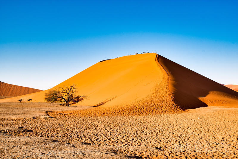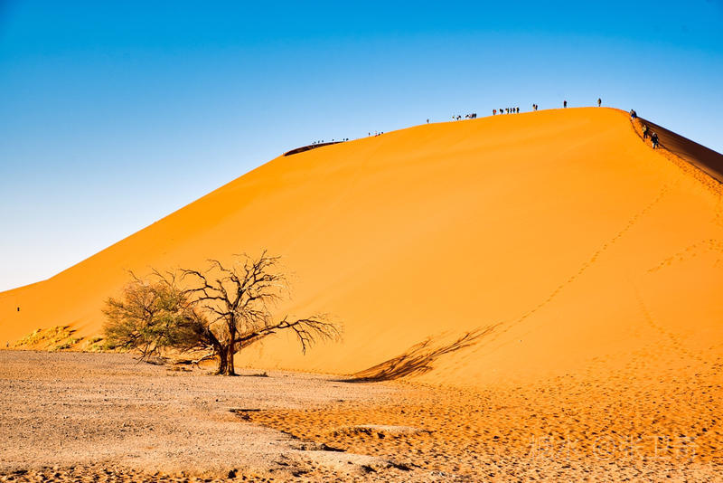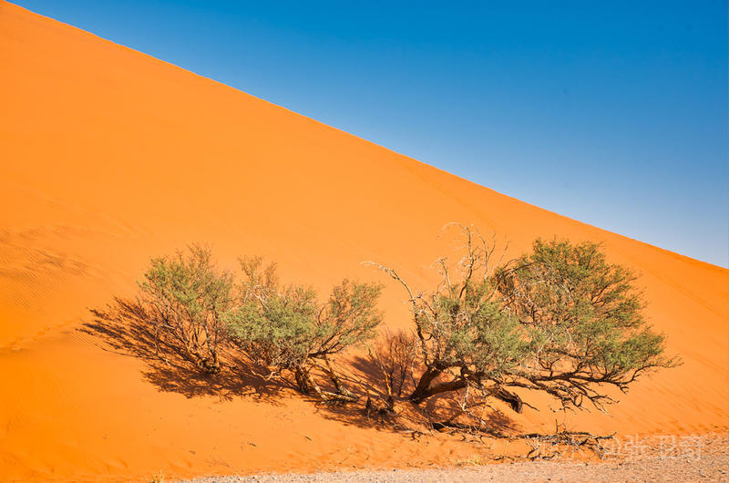大约三十公里以后,我们在离道路尽头几公里远处看到45号沙丘,这是索苏维来比较有名的沙丘,也有着世界上最美的沙丘之称,它的优美线条和鲜艳的铁红色曾经多少次刊登在众多时尚杂志的封面。