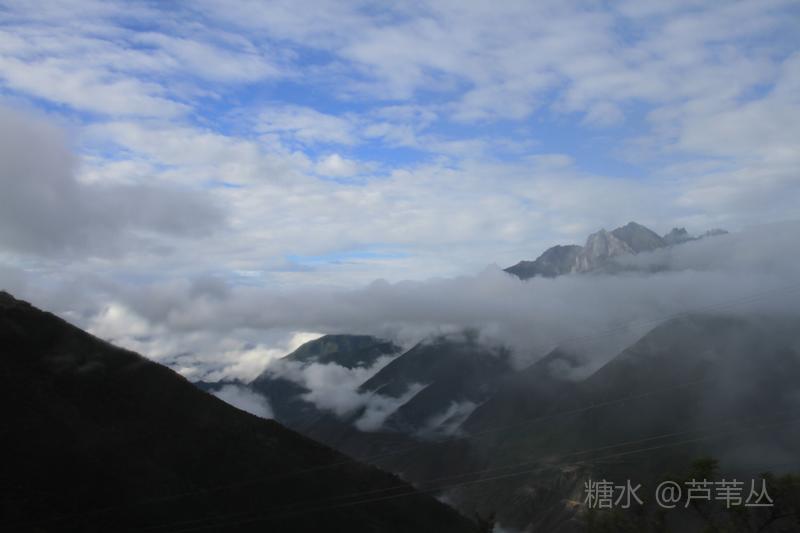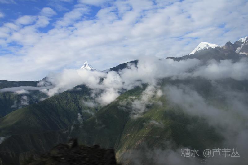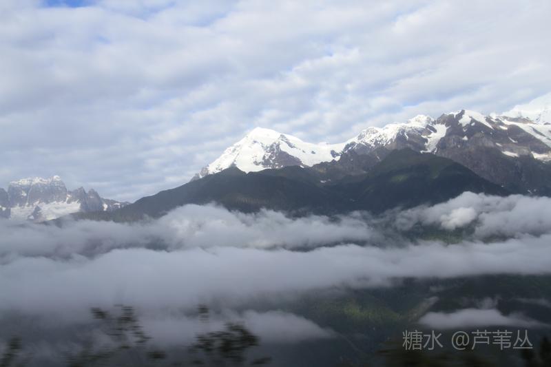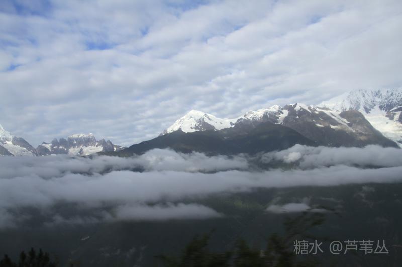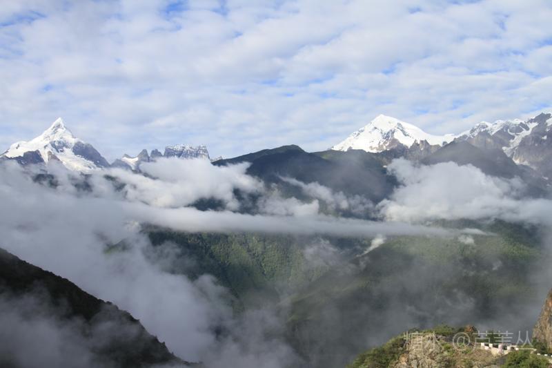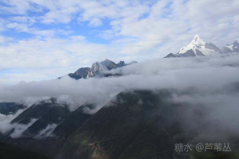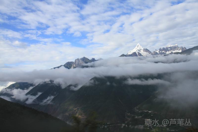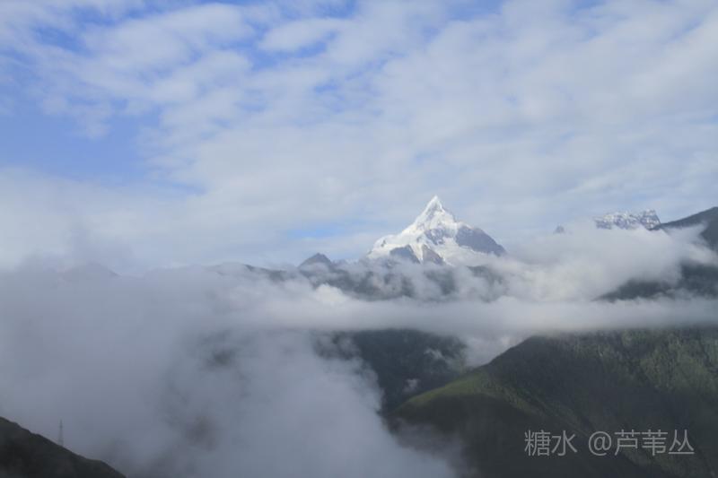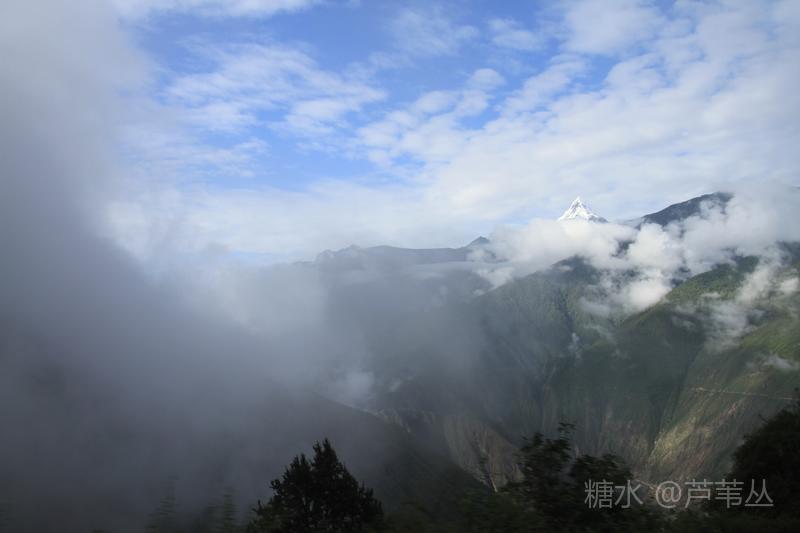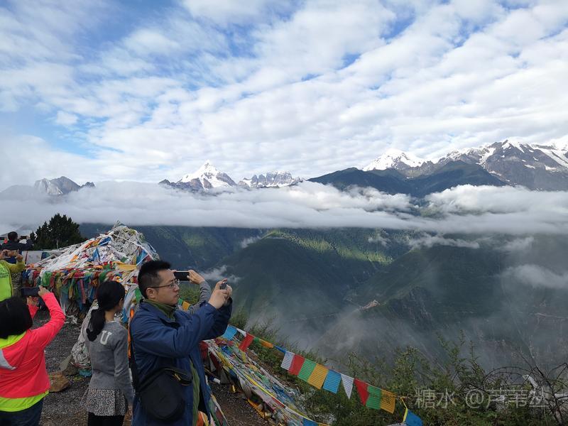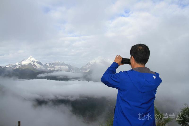 最后再来说一个发生在8月10日早晨,德钦县城某停车场的插曲:本来,按照组织者的通知,大家早早的收拾妥当,将行李装车准备出发了,可被大车前面停的一辆小车堵住了去路,……。一个多小时过后,看到小车主终于来了,他嘴里忙不停的道歉,把车开走了。 当车行至飞来寺,从车窗外看到云开雾散后的梅里雪山卡瓦格博主峰时,顿时惊声尖叫起来,刚才的不愉快,完全被眼前美丽壮观的景象驱逐的无影无踪了。司机把车停到路边,大家争相下车对着云雾中忽隐忽现梅里雪山群峰,或主角更背景拍了个够。 上车后,忽然有人说,看来真该感谢那位早上堵车的车主,若不是因他在停车场堵车耽误了车程,或许看们还没有机会亲眼目睹卡瓦格博主峰时真容呢。因为晚上刚下过大雨,平日里夏秋季山里的雾气是很重的。 此件事情告诉我们,现实中有的事情发生了,是祸是福,不要急于下定论,真是需要我们用时间,用理性、辩证的思维去看待之。这正是应了那一句古话:“祸兮福之所倚,福兮祸之所伏”。