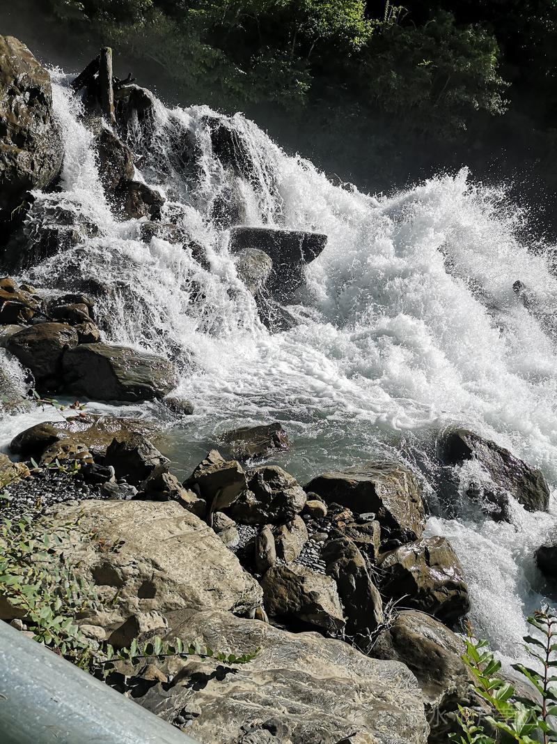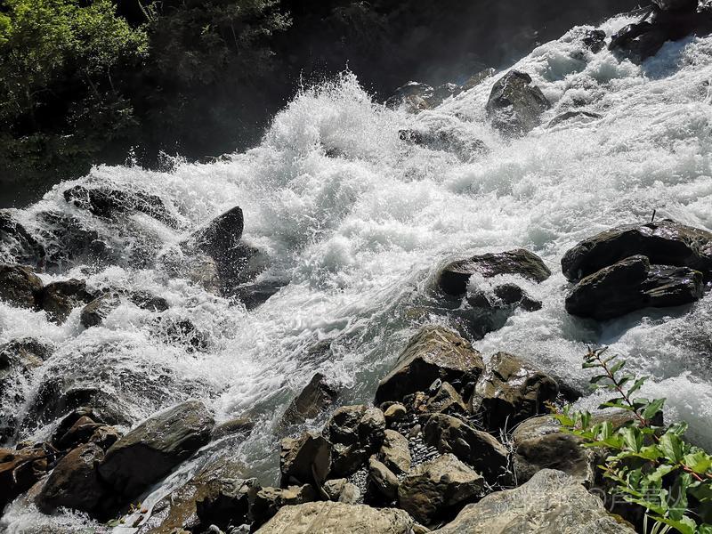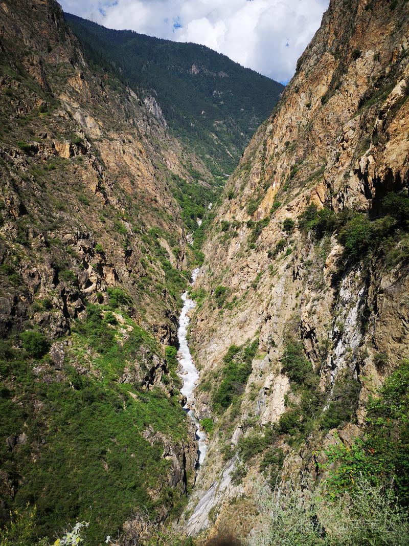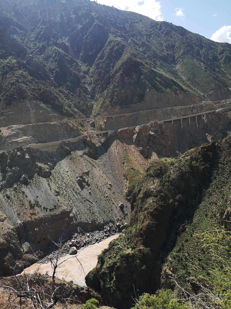 山路一边是峭壁另一边是深谷,深谷中湍急的河流水声震耳,有些危险的路段宽不足两尺让人不寒而栗。