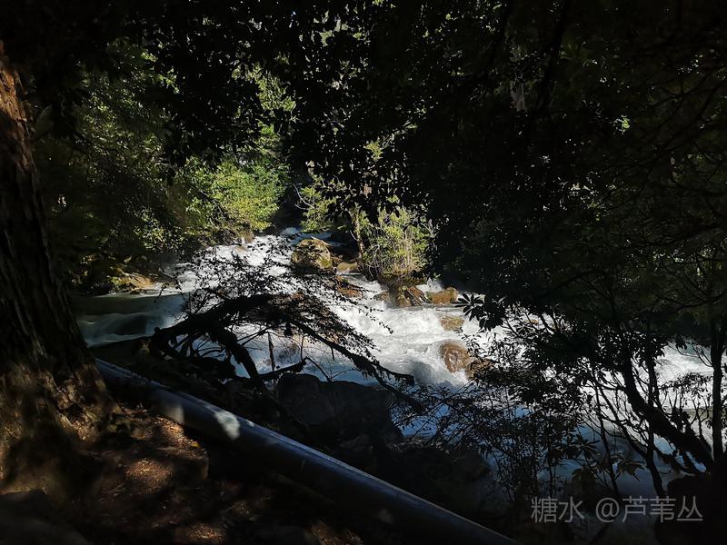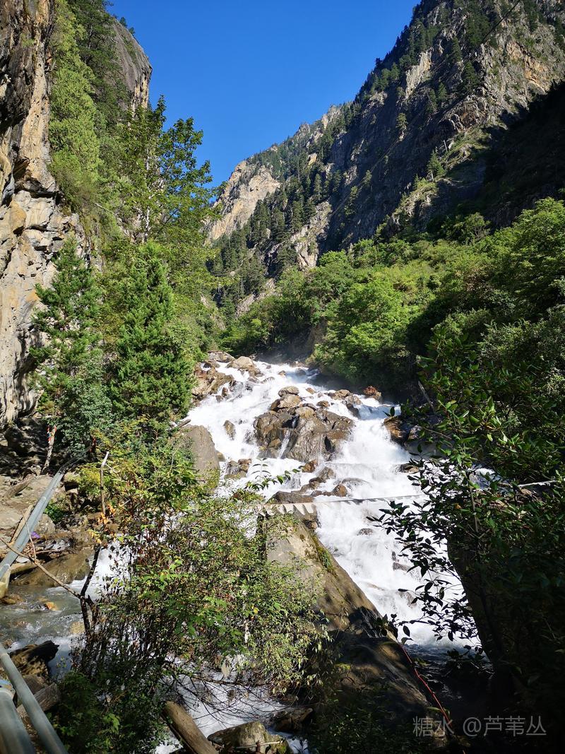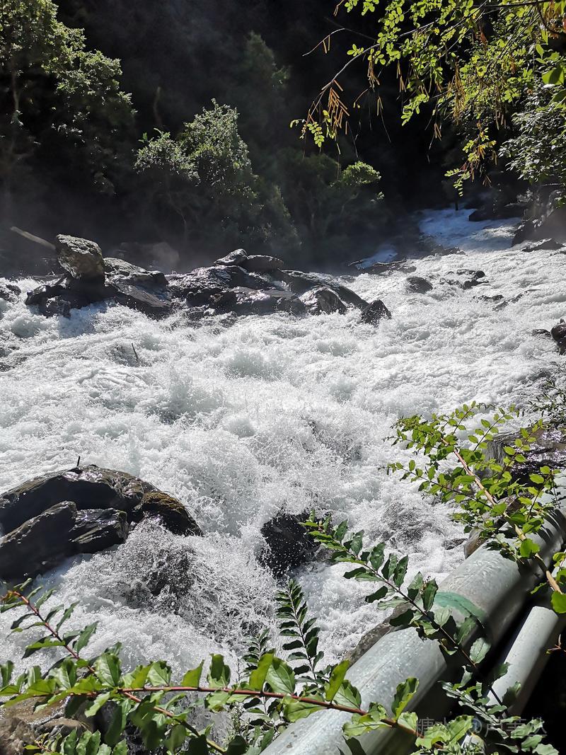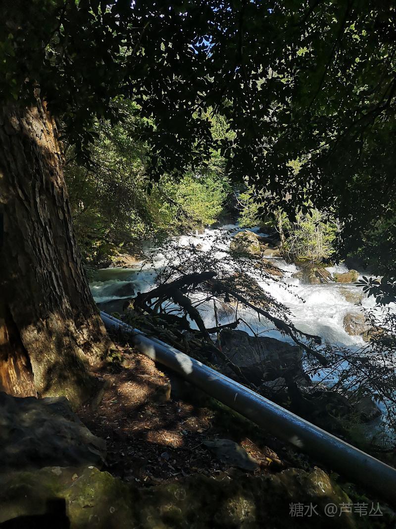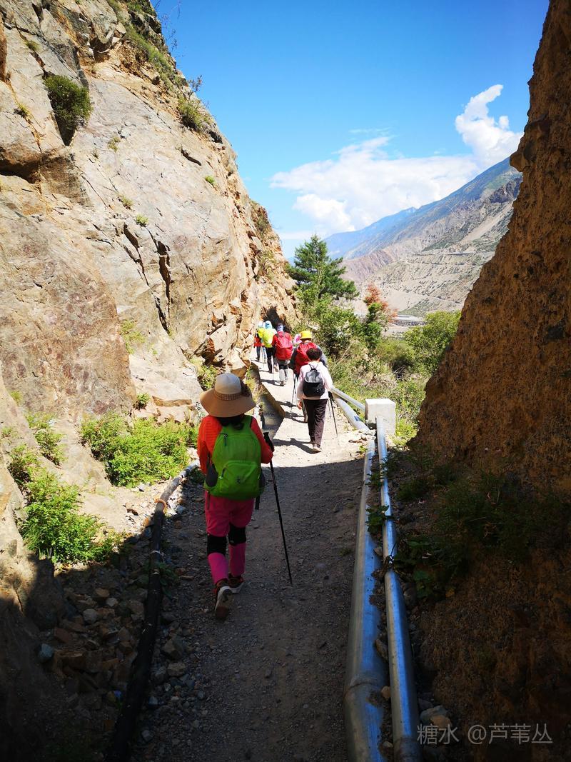 沿峡谷险道边铺设有两根取水钢管,无形中给来往徒步者增加了安全感。
