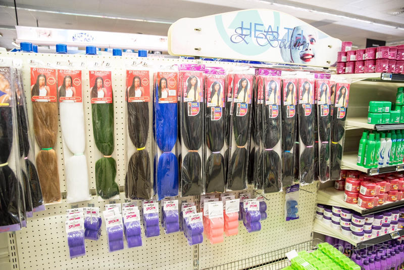 这是非洲妇女喜欢打扮,专门购买的不同颜色的假发,还有用不同颜色头发编好的小辫子