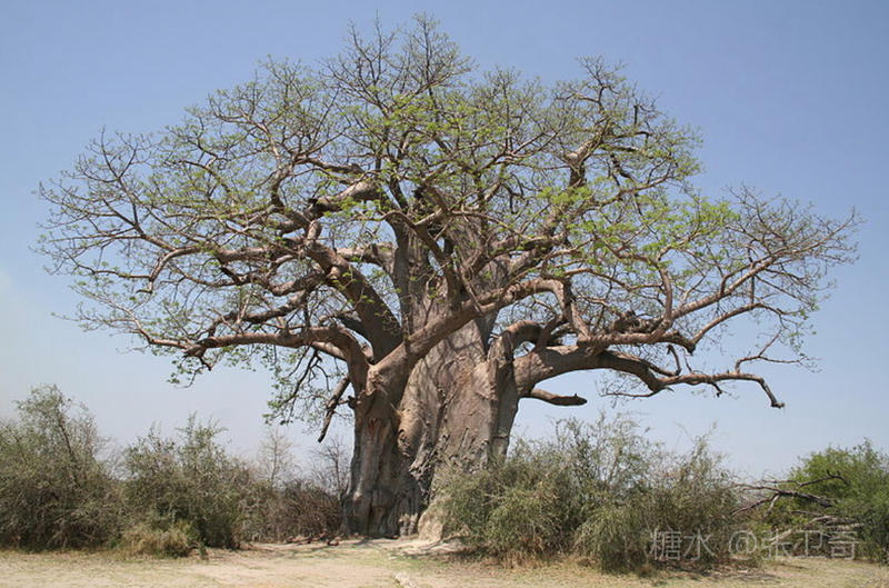 这是一棵千年的猴面包树,高达30多米。其树枝长得像树根一样,树干非常粗,直径可以到达7~11米,需要几十个人手拉着手才能合抱一圈。