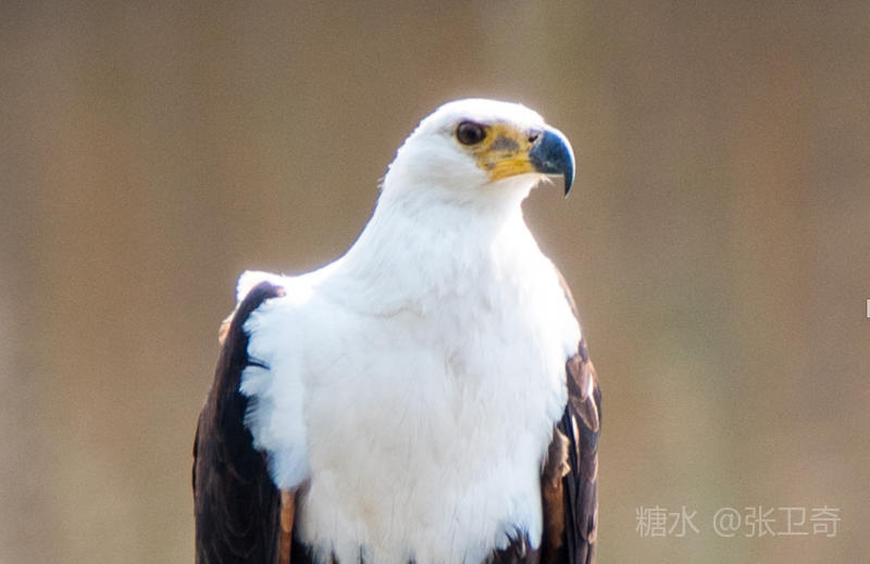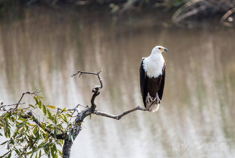 这只挺有风度的非洲海雕正站立在树梢上,严阵以待,随时准备抓捕吃食。