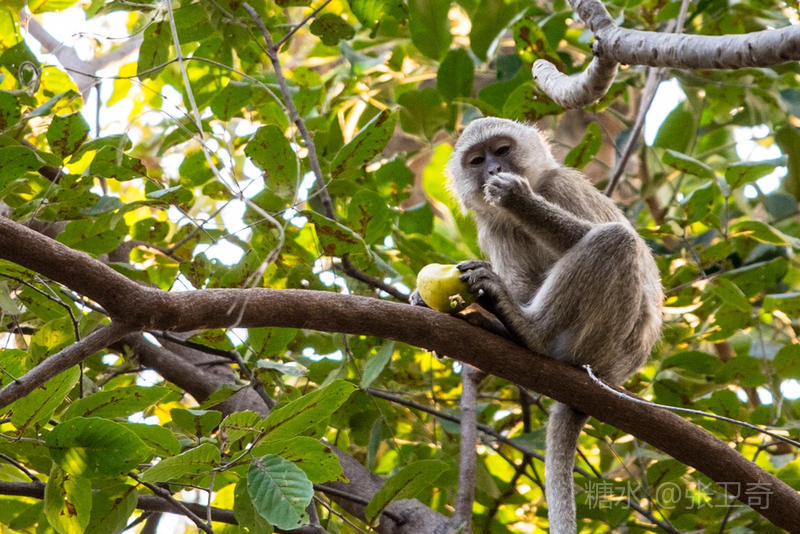 在旅店的果树上,也经常有一些长尾猴出没,专门挑食一些成熟的果子。