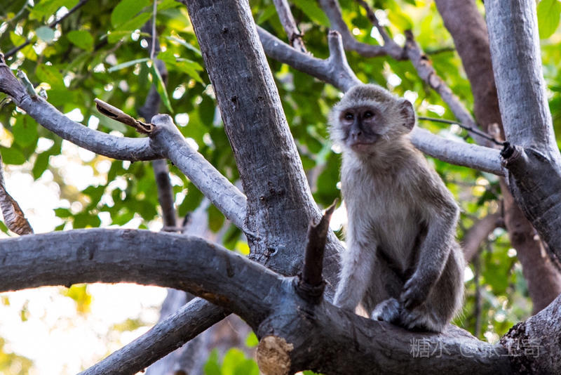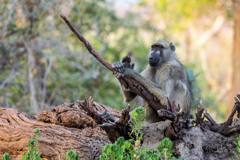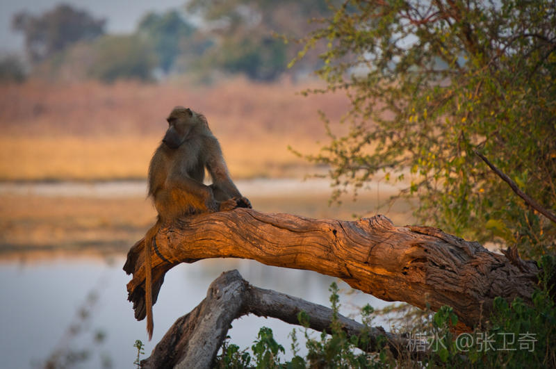 我们到了一个河岸,惊动了一群正在那里戏耍的狒狒,它们急忙向前移动了十几米,跟我们保持距离,然后坐在树上,观察我们的动静