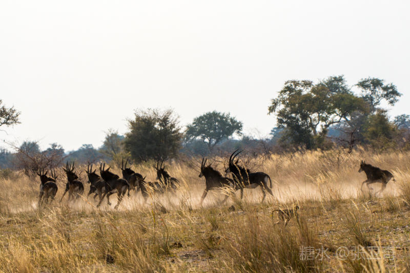 那些胆小的黑马羚也急忙停止喝水,跟着它逃跑。